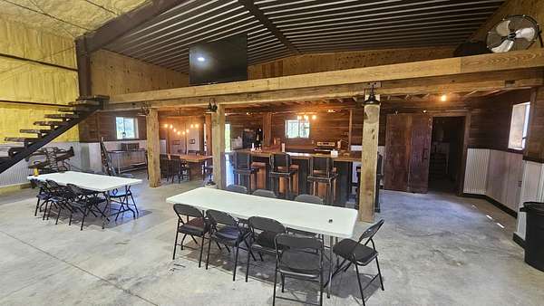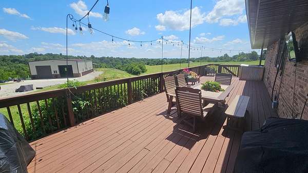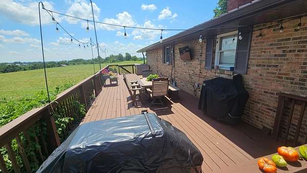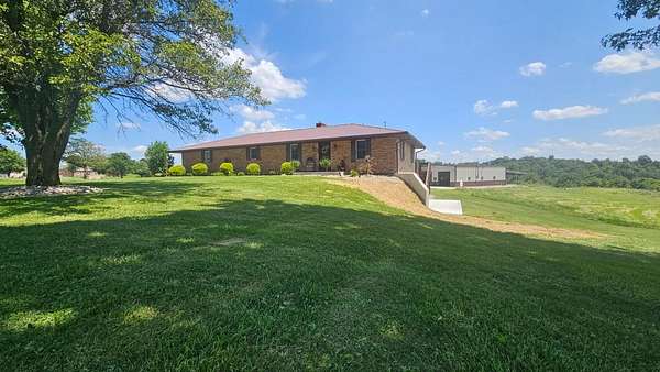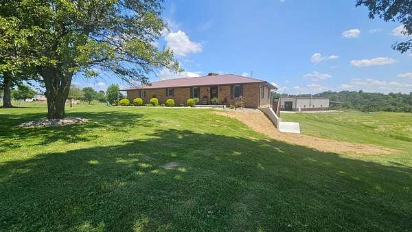 On rare occasion does a property come available of this magnitude. Premier location sitting on a rolling 35 acres with over 1400 ft of road frontage just 7 minutes off of US 50, this place is made to entertain. Updated 3 bed 2.5 bath brick ranch with newer metal roof, paint, fixtures, central air, driveway, patio and a full walkout basement. That brings us to the barn. This is definitely one of a kind. Fully insulated 40x64 steel truss structure with an outdoor firepit, a full kitchen, huge custom bar, seating area, a 40x20 mezzanine with stairs, custom built wood stove and a full bathroom with shower. This is a must see for people who love to entertain. Well maintained 1/3rd acre pond with covered dock that is stocked with crappie, hybrid bluegill, redear, and wipers (white bass/striper). Appr 9 acres fenced in with 3 automatic watering stations, so bring your horses or livestock. Endless possibilities with this awesome place!