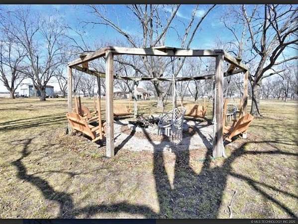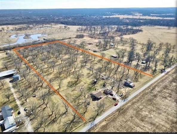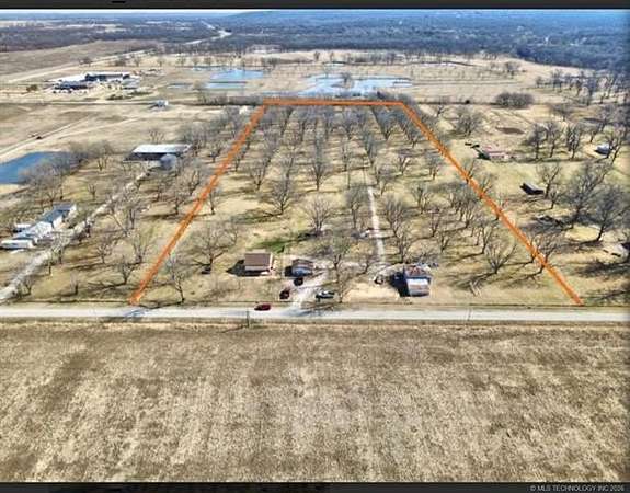 This 15.77 acres offers a picturesque pecan grove with a rare opportunity whether you're looking for a cozy home in the country. a place to build your dream estate, or a productive investment opportunity. The property includes a well-maintained two bedroom, 1 bathroom home with hardwood floors in the living room and bedrooms, plus tile in the kitchen and laundry areas. The fenced front and back yards create a welcoming space for pets and gardening. The garage has been partially converted into a tiny house, with two rooms and a would-be bathroom that could serve as a private guest suite (Plumbing was started but not completed) leaving room for customization. For those who need space to work or store equipment, the property features a large shed suitable for tractors, a shop area and a few small barns within a fenced area for chickens and goats or other livestock. The land is very horse friendly, offering endless possibilities for equestrian use. The highlight of this property is its thriving 15.5 acres pecan orchard, with about 150 producing trees; native Oklahoma pecans, paper shell pecans, and other varieties. These trees are mature, healthy, and well established, offering an abundant harvest year after year. Buyers can enjoy the orchard as a source of personal enjoyment, a supplemental income stream, or as a foundation for a pecan business. With pecans in high demand, this orchard provides not just shad and beauty but also long-term value. Outdoor living is made for entertainment with a gazebo surrounded by swinging chairs and a fire pit, plus a larger fire pit perfect for managing fallen branches. A peaceful creek runs along the back boundary, and the entire acreage is fully fenced. Located close to the city, yet offering the serenity of Oklahoma country life, this property is a perfect fit for pecan growers, bobby farmers, or anyone seeking a tranquil lifestyle with existing pecan production. Detached garage and barn. Beautiful Setting!