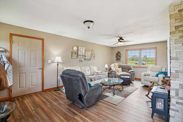 LOOK NO FURTHER! This is truly a one-of-a-kind property! Nestled high on a hill with 30 acres of scenic views, this 2000-built custom home was perfectly positioned to take full advantage of its stunning surroundings. A winding driveway leads you to this peaceful and private retreat. This ranch-style home features cathedral ceilings, 4 bed/3 bath, an open floor plan, new furnace and A/C, granite/dolomite countertops, new durable vinyl flooring, and so much more. The spacious living area flows seamlessly to a 26x12 deck, ideal for enjoying the scenic views. The primary suite offers a walk-in closet and a custom bathroom with a beautiful, tiled shower. The walk-out lower level includes a family room, game room, full bath, and an additional bedroom, again with amazing views! Additional highlights include an on-demand water heater, covered front porch, attached 1 car garage, and privacy. Don't forget you're just minutes from Walmart, Meijer, downtown Hillsdale, and Hillsdale College. Also included is a 60x40 stick-built outbuilding that has about 800 sq ft of finished living quarters- perfect for an in-law suite, guest space. Featuring quartz counter tops, 2 bedrooms, and 1 bath with laundry. This sale includes two parcels and offers an incredible opportunity for a serene country living with modern comforts. Don't miss this rare find! Buyer must be pre approved/ or provide proof of funds for viewing. Two tax ID number 30070292000262963 and 30070292000252963. This company makes no warranties or representations about the contents of this data. It is the responsibility of interested parties to verify all information. Taxes were obtained from the local assessor and may change after closing.