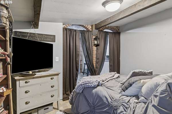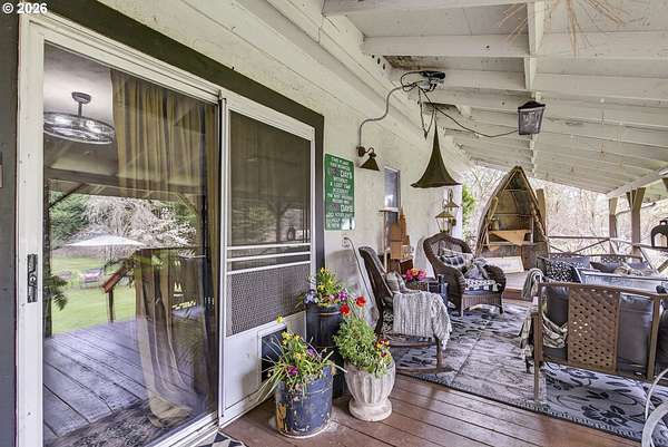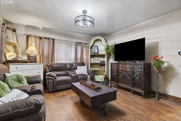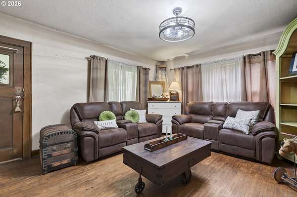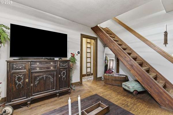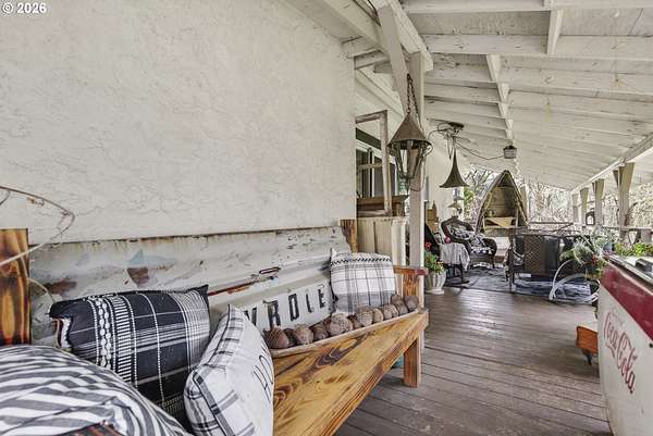 This classic 100-year-old ranch-style home brings together character, space, and everyday functionality. From the moment you arrive, the large covered front porch sets the tone - a great spot to relax and enjoy the setting.Inside, you'll find real hardwood floors, glass door knobs, and the kind of details that give a home lasting personality. The main level offers a comfortable living room with both blinds and curtains, a central dining area, and a functional kitchen with laminate countertops, stainless steel appliances, an electric range, microwave, and LG dishwasher.Just off the dining area is an additional bedroom and laundry space, along with a nearby family room that opens to the backyard through a sliding glass door - creating a flexible layout that works well for everyday living or hosting.Upstairs features two dormer-style bedrooms with hardwood flooring, blinds, and built-in closet spaces that add both charm and usability. The upper level also includes a bathroom with a shower stall and a bonus coffee bar area - a thoughtful touch that makes the space feel complete.The home is equipped with central heating and air conditioning, both updated in May 2025, along with a newer roof installed in 2025 - giving buyers confidence in the major systems.Out back, the property really opens up. With access from a rear road, there's excellent potential for adding a shop or additional access point. The yard includes multiple outbuildings, garden beds, a fire pit area, and plenty of room to expand or personalize.If you're looking for a home with character, usable space, and room to grow - this one is worth a closer look.