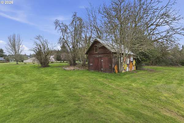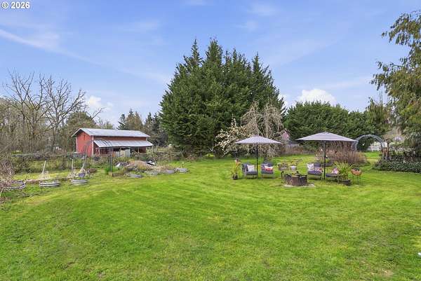 - Barn, Covered Patio, Fire Pit, RV Parking, Raised Beds, Tool Shed, Yard