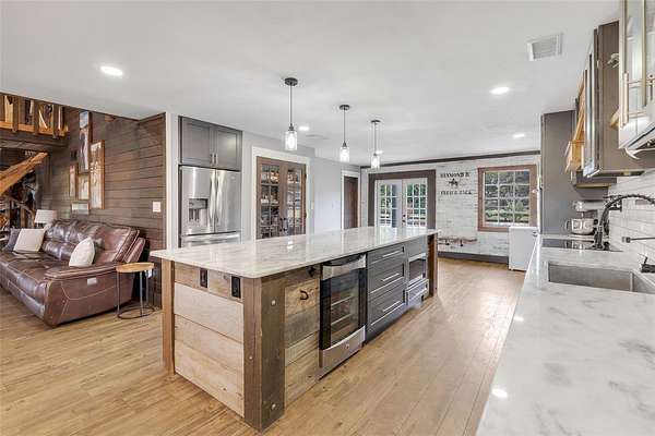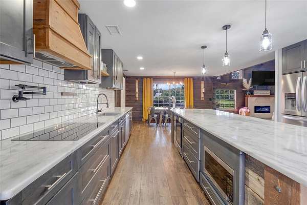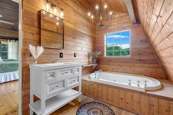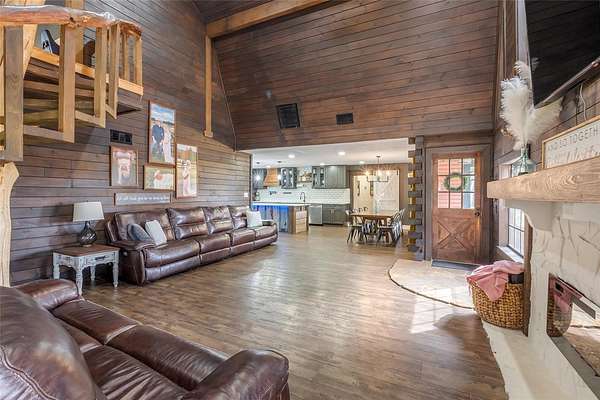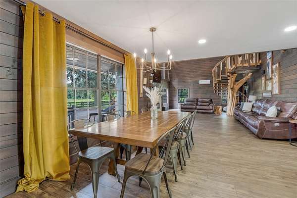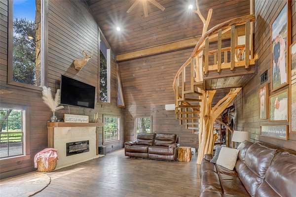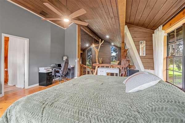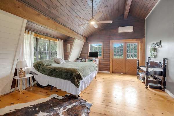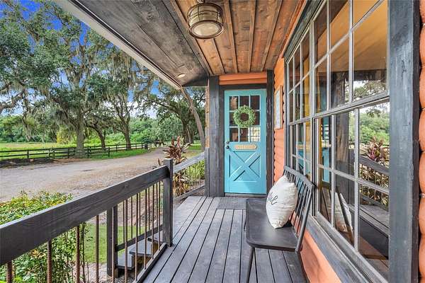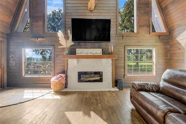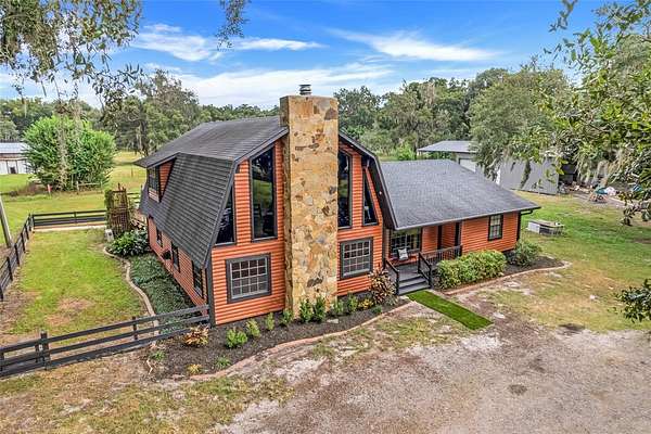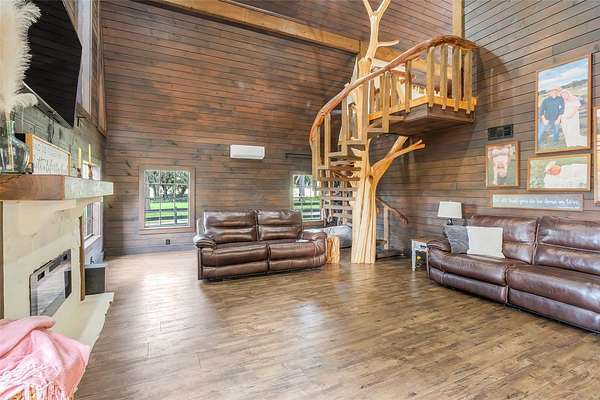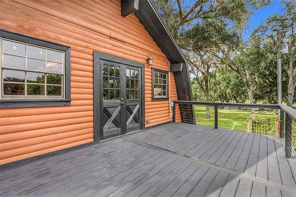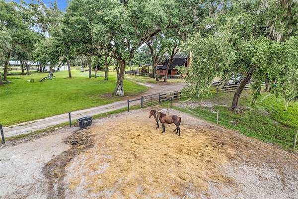 Owner's had it Temp off market for while, We are active and ready now for Buyers! Welcome Home to this extraordinary 5-Acre farm log house property that truly has it all! Nestled in the heart of Weirsdale, this stunning home offers the perfect blend of rustic charm and modern luxury. This property is an equestrian or farming enthusiast's dream, providing abundant space and versatility for a variety of uses. The spacious 4-bedroom, 3-bathroom home features over 2,500sqft of living space providing you 3 bedrooms on the first floor and a private upstairs loft suite complete with a private balcony . As you step inside, you'll be greeted by soaring high ceilings in the living room and a stunning cedar tree spiral staircase leading to the upstairs suite adding a striking architectural focal point that provides character and charm to the home. The gourmet farm-style kitchen is designed for both functionality and style, featuring a large kitchen island that seats 6, Large pantry, Double Wall Oven, Cooktop with a Vented Hood, a pot filler, and a wine cooler that is the perfect setup for hosting family and friends. The primary suite, located just off the kitchen, offers a spacious ensuite bath that includes a stand-alone soaking tub, walk-in shower with spa shower heads, a large walk-in closet.