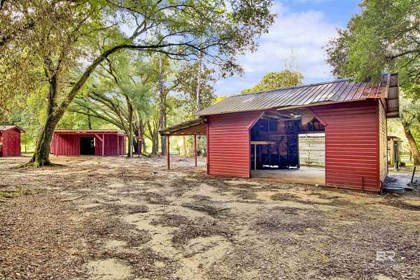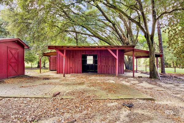30 Acres for Sale consisting of PPIN# 10908 = 10 +/- Acres, PPIN 10906 = 6 +/- Acres, and PPIN 17428 = 13 +/- Acres. 30 Acre Estate in central Baldwin County for sale surrounding a beautiful creole style farmhouse. If you are looking for un-zoned property within Baldwin County this Estate may be what you are looking for. Located behind ornamental iron gates with an oak tree lined paved driveway this newly renovated Estate overlooks pasture land, fountains, 3 car garage with a RV spot, 4 stall barn, tack room, feed room, multiple outbuildings and PPIN 17428 has a newly renovated 5 bedroom 2.5 bath mobile home on it with barn & pond that can be Leased. The home is a 4 bedroom, 3.5 bath home with a wood burning fireplace and wonderful sun room overlooking gardens, PLUS there is a 1 bedroom, 1 bathroom guest Cottage/Mother-in-Law Suite on the property. Renovations completed in 2025 include new appliances, paint, trim with custom cypress, upgraded electrical, new gate, and new roof with bronze certificate in 2022. This property has a main house, 4-car garage, pool house, 55x20 pole barn, 12x24 storage room, 12x20 breeder room with incubator, 60x20 horse barn, 24x20 chicken house & 32x20 tractor storage shed. Agent is related to sellers and owner, each parcel is owned by different sellers. All information deemed accurate but not guaranteed. Buyer or buyer's agent(s) to verify all measurements and other listing information that they deem important to the buyer's satisfaction. Buyer to verify all information during due diligence.