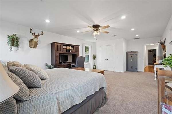 Outdoors, the property is fully outfitted for livestock or show animals with improvements completed between 2020 and 2022, including 16' X 50' working pens, a 34' X 24' show barn with a dirt floor, a 24' X 30' feed room with a 12' X 12' concrete wash rack and drain, a 30' X 40' shop with two 12' X 12' garage doors, a 24' X 40' equipment shed suited for large equipment, RV, boat, ATV storage, etc., and a 24' X 56' covered shed with two additional pens and a hay loft. Every structure integrates seamlessly with the landscape, offering exceptional functionality for agriculture, hobbies, or extensive storage.