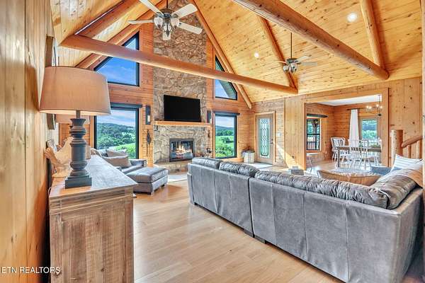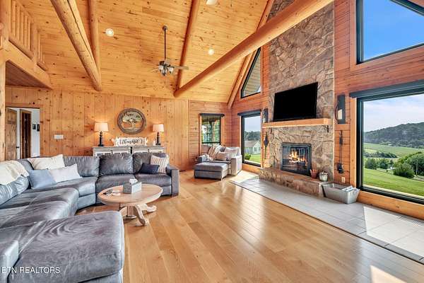 Log Home Retreat on 4.7 Acres with Sweeping East Tennessee Views - 1743 Holston River Drive, Rutledge, Tennessee Welcome to 1743 Holston River Drive, your private East Tennessee escape in the sought-after River Point Subdivision, where the Holston River winds gracefully through a landscape of rolling hills and mountain views. This impressive 2,842 sq ft Satterwhite log home sits on 4.7 fully cleared acres, offering panoramic vistas, timeless craftsmanship, and a rare blend of rustic charm and modern convenience. Key Features 3 bedrooms, 3.5 bathrooms, each with a private ensuite for comfort and privacy Satterwhite log construction showcasing authentic craftsmanship and enduring quality Vaulted cathedral ceilings and oversized stacked stone fireplace anchoring the open-concept great room Expansive windows flooding the home with natural light and capturing stunning river and mountain views Main-level primary suite for convenient one-level living Open loft area perfect for an office, reading nook, or creative space Wraparound covered porch ideal for morning coffee, sunset watching, or entertaining guests Two-car garage plus two-car carport providing ample parking and storage Partly finished bonus area ready to transform into an outdoor kitchen, game space, or screened lounge Unfinished basement offering potential for workshop, hobby room, or future expansion Fiber-optic internet and municipal water for modern comfort and reliability Located in the scenic River Point community, known for its peaceful atmosphere and natural beauty Lifestyle & Location Experience the very best of East Tennessee living-fresh air, wide-open skies, and peaceful surroundings that invite you to slow down and enjoy the moment. Spend your days exploring the nearby Holston River, hiking through rolling countryside, or simply relaxing on the porch while watching deer wander through your yard. The property's 4.7 acres are entirely usable, offering space for gardening, outdoor recreation, or even a small homestead. Conveniently located near Rutledge, with easy access to Knoxville, Cherokee Lake, and Morristown, this home offers both seclusion and accessibility-perfect for families, retirees, or anyone seeking a serene retreat without sacrificing convenience. Value & Buyer Appeal With its spacious layout, solid log construction, and unmatched natural setting, this property is ideal for: Families desiring space to grow and entertain Remote professionals seeking high-speed internet and tranquil views Nature enthusiasts craving privacy and outdoor adventure Buyers looking for a multi-generational home or vacation retreat Few properties combine this level of craftsmanship, acreage, and panoramic beauty in such a prime East Tennessee location. Schedule Your Showing Don't miss your opportunity to own a piece of East Tennessee paradise. Schedule your private tour today and discover the perfect blend of rustic elegance and modern living at 1743 Holston River Drive. Disclaimer Buyer to verify all information. Utilities, lot boundaries, and school zones to be independently verified by buyer/buyer's agent. Info deemed reliable but not guaranteed. Some images have been AI-staged to assist with visualization and may not represent actual furnishings or finishes.