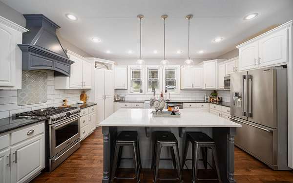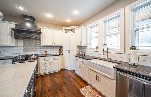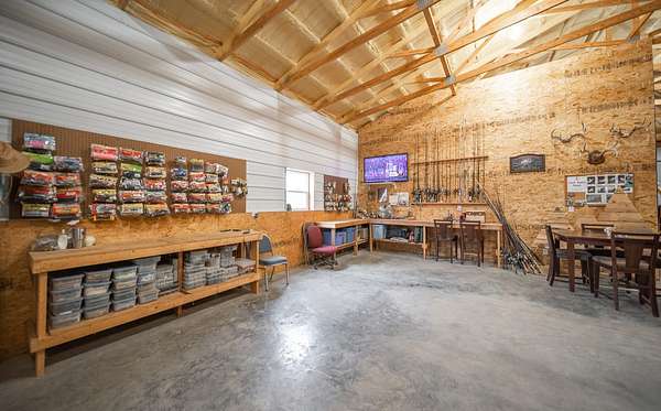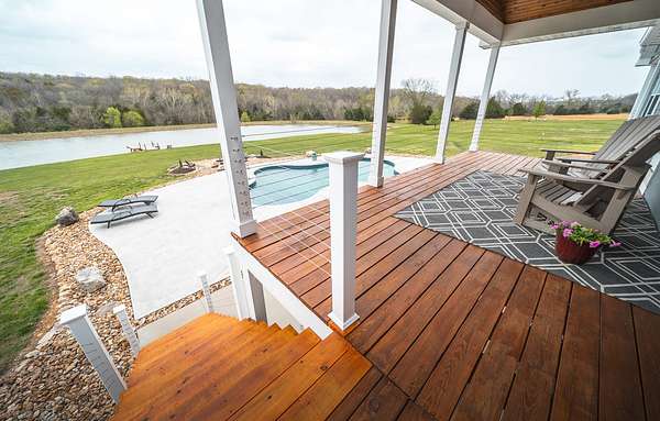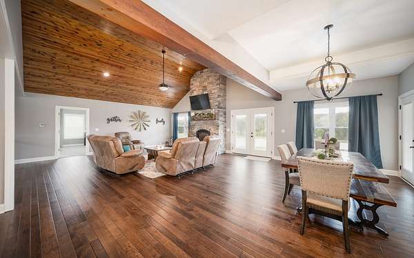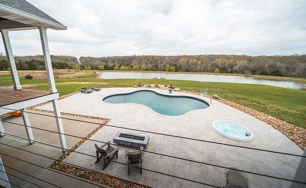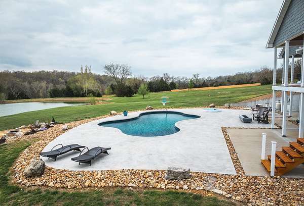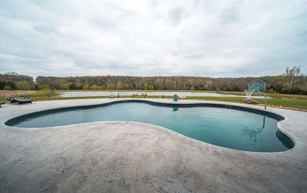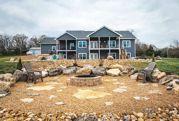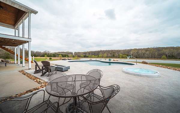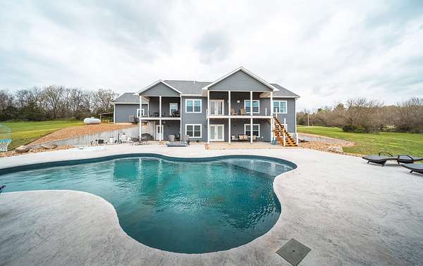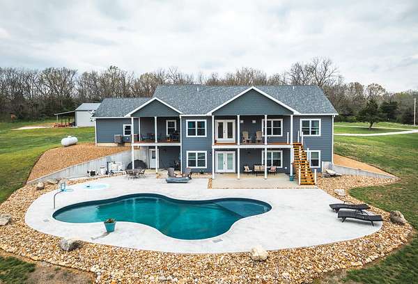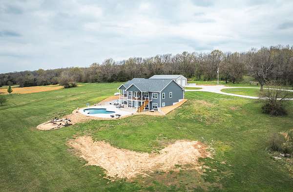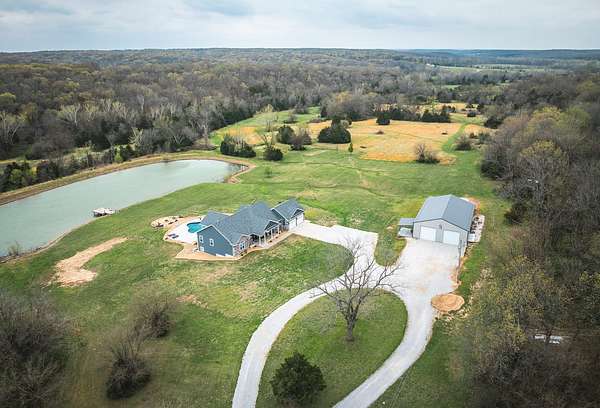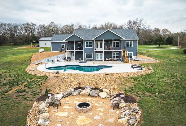 Dawnview Estate is located close to Truman Lake and minutes from Sterett Creek Marina! This stunning 4,400 m/l sq ft home offers 2x6 exterior walls with spray foam insulation, heated bathroom floors, and accent lighting inside and out. The kitchen boasts a quartz countertop, granite island, and a hidden giant walk-in pantry. Also a 40x60 shop with a 16x40 lean to and 400m/l sqft living quarters. Outside, enjoy a pool and spa area less than two years old and a large pond stocked with Bass and panfish, and fruit trees have been planted as well. The property also includes, a hidden safe room accessed through a bookcase, and breathtaking sunrise and sunset views to watch while enjoying the sights and sounds of nature. Property to be surveyed prior to closing.