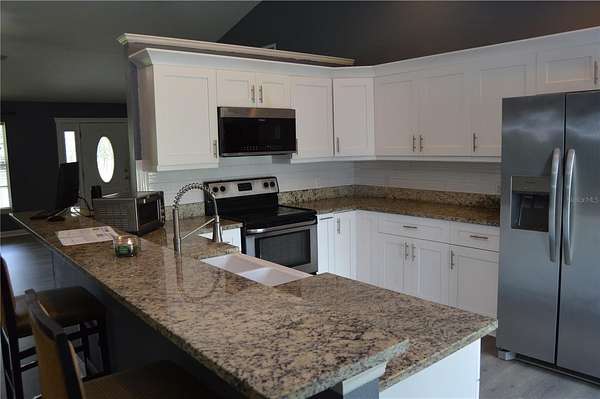 Priced to sell below appraised value! SOLAR PANELS ARE PAID IN FULL, and WARRANTY is TRANSFERABLE to new owner!!! Country Living saving you thousands of dollars yearly on your electric bill with quick access to Tampa? Then come and make this your new home! Best property value in Dade City. Located just a few minutes from I-75, this home offers an easy commute to Tampa going South, and Ocala going North. Situated on a sprawling 2.14-acre lot, zoned AR and USDA eligible -- no down payment required. Home is open and spacious, with 2316 Square Feet Living Area and includes a cozy wood-burning fireplace that adds warmth and charm, 4 Bedrooms and 3 Full Baths, Bonus Room, expanded attached 2-Car Garage, and private fenced in in-ground Pool and Spa. New roof in 2023. This property also benefits from owned not leased solar panels installed in 2024. NEW flooring through out the house 2025. NEW Stainless steel kitchen appliances 2025. Remodeled kitchen with farm sink and granite counter top in 2022. Upgraded walk in shower installed in master en-suite in 2022. AC 2021, New pool sand filter in 2023 perfect for cooling off on hot Florida afternoons or hosting weekend get-together. Appreciate the upgrades and Quality construction by Custom Builder. Vaulted Ceiling, adding to the open and spacious feeling; Fireplace in the Great Room; Stainless Steel Appliances, Master Bath with dual sinks, large walk-in closet and walk-in shower; low maintenance Hardy Board Siding finishes the exterior of the home and is extremely durable. Enjoy room to roam on the large 2.14 Acre lot that is completely fenced. The front porch wraps around to the sides of the home, and measures 50' long - a great place to entertain friends or relax on the weekends. And don't miss the extra storage area, measuring 7 x 16 in the expanded garage. No HOA or CDD, No water bill thanks to a private well and septic system. This property is also not located in a flood zone, giving you added peace of mind.