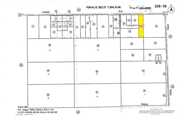 I-5 south to Anderson, exit North St., turn right. Left on Hwy 273. Right on South St & go 6.1 mi. Left on Happy Valley Rd. Right on Lassen Ave. Property on left at sign & pink tape.