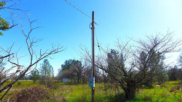 Est $512/moShasta County land for sale with an excellent country feel. Level topography and generous tree cover near the back of the parcel. PGE power has been dropped onto the property since an old home was on the lot in the past. There may be an old septic but no permits found. Water at the lot frontage provided by Clear Creek Water District. Has flowering bushes and possible fruit trees. This property is just 6 miles from central Anderson and I-5. Anderson is home to the Anderson River Park and the Coleman National Fish Hatchery which is nearby.