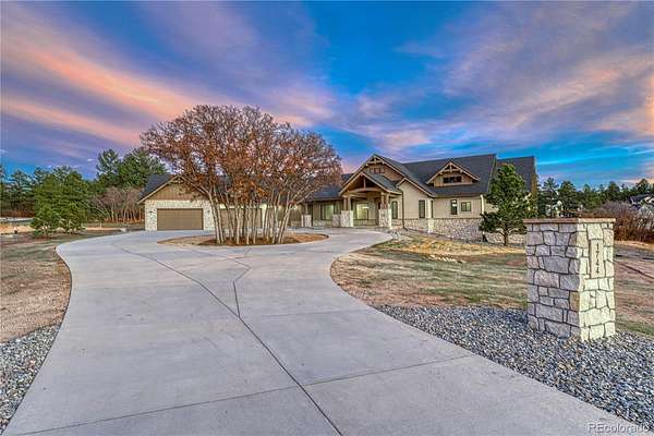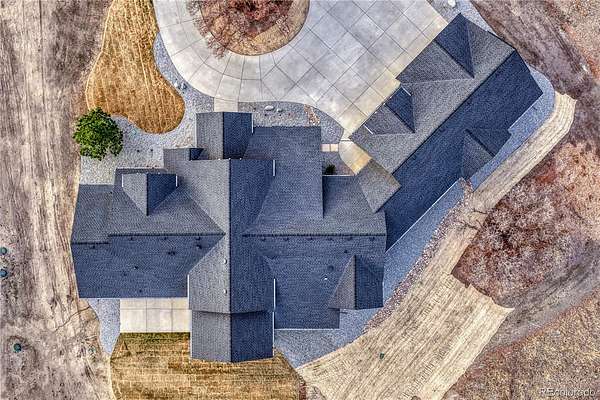 Welcome to refined Colorado living in this brand-new custom home, perfectly situated in a quiet, small-acreage neighborhood offering both privacy and convenient access to shopping, dining, and everyday amenities. A circular driveway and expansive covered front porch create a striking first impression, inviting you into a thoughtfully designed residence where luxury meets functionality.