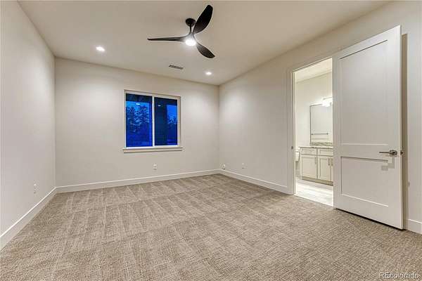 Designed for easy one-level living, the main floor includes a luxurious primary suite complete with a spa-inspired 5-piece en-suite bath, steam shower, and custom closet. A secondary main-floor bedroom with its own en-suite bath offers comfort and privacy for guests or multi-generational living. Step outside to the expansive covered deck overlooking the professionally landscaped 2-acre lot—perfect for enjoying Colorado’s beautiful sunsets!