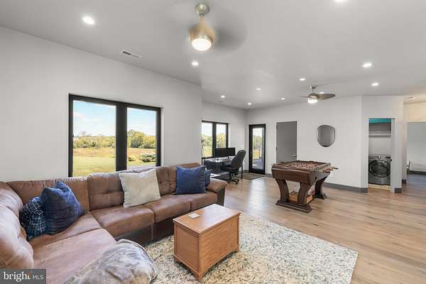 Welcome to the farm where the land has been organically kept, animals have been rotationally grazed, and wildlife abounds! This property has it all! Views, Location, Acreage, Pond, Additional DUR, Home and Cottage! This exceptional property offers over 75 acres of natural beauty, complete with a pond, a stream (Long Marsh Run), 2 high-tensile fenced paddocks, Approx. 30 tillable acres, Old Barn with electric and water spigot, and an above-ground pool ( owner can remove) The main residence features 4 bedrooms and 2.5 bathrooms, almost 3000 sq ft, including the cottage. Thoughtfully designed with spacious 9-foot ceilings and a cathedral ceiling in the main living area. Clean, modern finishes include frameless doors, solid-core 7-foot doors, all complemented by engineered oak flooring throughout. Adjacent to the main home is a versatile 600-square-foot building complete with a full bathroom-ideal for a private office, guest house, or in-law suite. 1 EXTRA DUR (Dwelling Unit Right) At the heart of the home is a gourmet kitchen designed for serious cooks and entertainers alike. It boasts a Wolf 60" dual-fuel six-burner range with infrared dual griddle and pot filler, a Sub-Zero refrigerator with freezer with built-in ice maker, a Bosch dishwasher, a Kohler Stages 45" stainless steel undermount sink SilentShield, and a pull-out corner cabinet and drawers, completing this high-end culinary space. Outdoor living is equally impressive, with a 940-square-foot IPE wood wraparound deck and an 892-square-foot covered patio featuring a tongue-and-groove walnut ceiling-perfect for entertaining or simply enjoying the views and serenity. Long Marsh Run flows through the property. Plenty of space for horses, cows etc.. bring your animals! The property offers a rare opportunity to enjoy edible landscaping at its finest, featuring a wide variety of established fruit trees and plantings, including walnut forest right in your own backyard! Imagine stepping outside to harvest fresh produce throughout the seasons-perfect for healthy living, homesteading, or simply savoring nature's abundance. Efficiency and comfort are built into every aspect of the home. A high-efficiency heat pump with a fresh air make-up energy recovery unit ensures year-round comfort, while a 500-gallon propane tank . The home also features an on-demand propane water heater, with a gas line roughed in for a future grill. Additionally, conduit is already in place for a future garage pad and firepit area. Modern connectivity is no issue thanks to Viper Broadband satellite service which is one option that the owners chose, allowing you to enjoy the best of both worlds: expansive rural acreage with high-end finishes and reliable modern conveniences. This is a rare opportunity to create the lifestyle you've been dreaming of-room for animals, space to grow, water features, established orchards, and a home designed to last. Check out our 3-D Tour attached to the listing! PLEASE DO NOT DRIVE UP THE DRIVEWAY WITHOUT AN APPOINTMENT AND YOUR REALTOR**