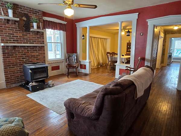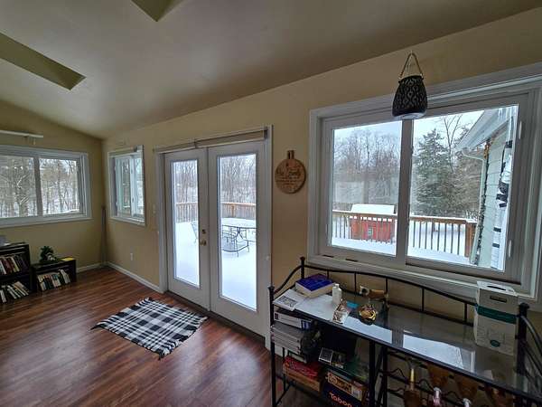 Discover country living in this cozy 2,040-square-foot home set on a generous 2.374-acre lot. This property features 3 bedrooms and 1.5 baths. A 4th room is being used as a dressing room but would make a great sitting room or office. The house has been updated with modern features, including a renovated kitchen and bathroom with heated floors. The addition of a bright 16x20 great room with natural light creates a relaxing space. Enjoy comfort year-round with a newer furnace, central air conditioning, and a tankless water heater. Relax outside on your private deck or covered front porch while taking in the peaceful surroundings. A small pond adds to the outdoor charm, perfect for enjoying nature. The large lot offers plenty of space for gardening or outdoor fun, and there's room for future expansion if desired. Located just minutes from local schools, this home offers the quiet of rural living with easy access to community services.