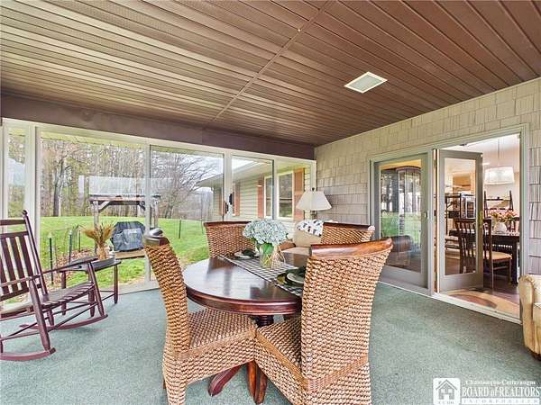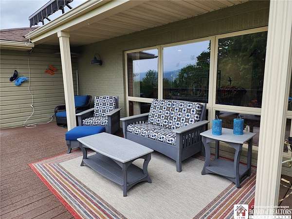 Welcome to your private countryside retreat! This beautifully maintained ranch home offers the perfect blend of comfort, space, and scenic surroundings. The spacious primary suite features a thoughtfully designed closet complete with custom cabinetry, while two additional bedrooms and a full bath provide plenty of room for family or guests. The heart of the home is the kitchen, showcasing elegant Cambria countertops, abundant cabinetry, and ample workspace-ideal for both everyday living and entertaining. The inviting living room centers around a cozy woodburning fireplace and captures breathtaking valley and mountain views through its generous windows, filling the space with natural light. Enjoy peaceful mornings or quiet evenings in the enclosed sunroom tucked at the back of the home, offering privacy and a serene connection to nature. Out front, a welcoming open porch with a retractable awning creates the perfect spot to relax and take in the surroundings. Central air ensures comfort year-round. The finished lower level expands your living space with a utility room, workout area, craft room, and a large recreational or family room-plenty of flexibility to suit your lifestyle needs. For added comfort, you will find a wood/coal burning stove to heat the basement to offset the forced air heat. Step outside and experience everything this incredible property has to offer. With a fully fenced 10+ acres, you'll find a covered grilling area, space for outdoor fires, a barn, and a second garage-perfect for hobbies, storage, or animals. A private, stocked pond adds to the charm, while mature landscaping includes blueberry bushes, peach and pear trees, and multiple apple trees, including productive Cortland varieties. This property offers the rare combination of privacy, functionality, and natural beauty, your own slice of country living. All this while still being just minutes away from the city.