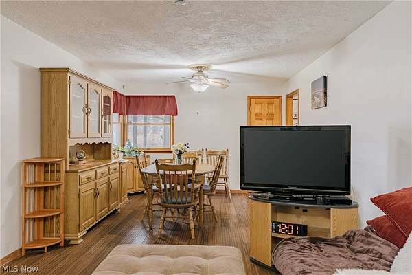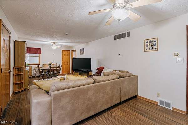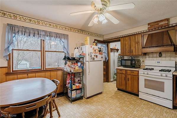 Welcome to 17446 Snyder Rd - A charming ranch in Chagrin Falls! This home offers convenience, comfort, and a layout ideal for everyday family living. Step through the front door into a spacious living room that is currently arranged as a combined living and dining area, offering great flexibility for both relaxing and entertaining. Large bay and corner windows offer natural light, while updated laminate flooring adds warmth and durability throughout the main gathering area. The kitchen features hardwood cabinetry, a tile backsplash, and a full complement of appliances. An eat-in area creates the perfect spot for casual family meals. The home includes three bedrooms, including a primary bedroom with an on-suite bathroom, generous closet space, and direct access to the backyard-an ideal retreat at the end of the day. A second full bathroom is located just outside the secondary bedrooms, making it easily accessible. Just off the kitchen, you'll find a convenient laundry room, helping keep daily routines simple and organized. Outside, the huge backyard provides plenty of room for kids, pets, gardening, or summer gatherings. The patio creates a perfect outdoor space for grilling, relaxing, and enjoying the peaceful surroundings. With its unbeatable location across from Kenston Schools, comfortable single-floor living, and a large backyard ready for outdoor fun, this Chagrin Falls ranch offers a wonderful opportunity to create a home that fits your family's lifestyle.