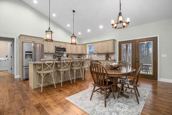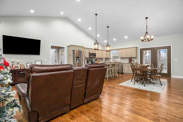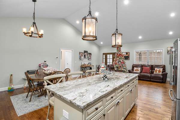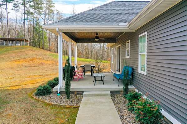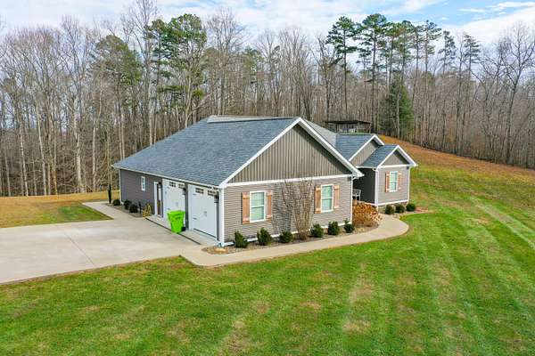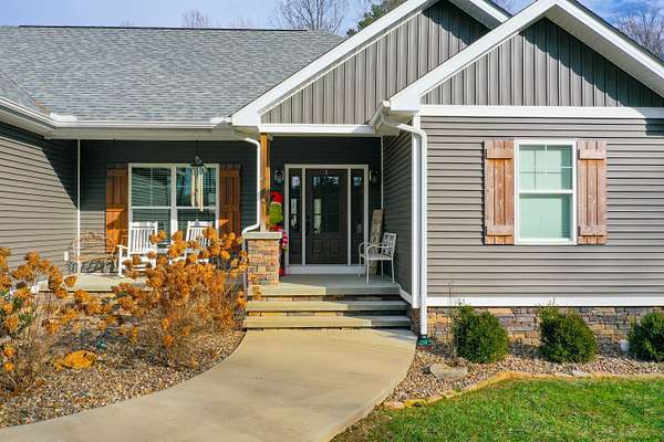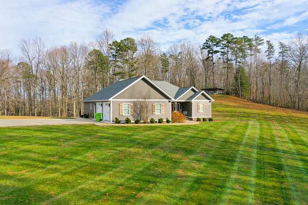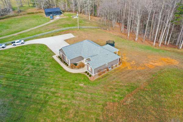 Private country living just minutes from town. Built in 2020, this approximately 1,800 sq ft home sits on 3.7 acres and offers a blend of modern construction and peaceful surroundings while remaining only about 10 minutes from town amenities. The home features 3 bedrooms and 2 full bathrooms with an open layout. The kitchen includes a large breakfast island, ample cabinet space, and stainless steel appliances, opening into the main living and dining areas with vaulted ceilings and recessed lighting. The primary bedroom offers a spacious layout with an attached full bathroom and a walk in closet. Additional bedrooms provide flexible space for a variety of uses. The home also includes a 2-car garage and a concrete dog kennel. Outside, the property offers a mix of open yard space and wooded privacy, with a covered back porch ideal for outdoor use. The long driveway and surrounding acreage provide separation from neighboring properties. Newer construction homes, with acreage and within minutes from town don't hit the market often, so don't miss your chance!
