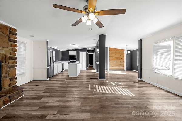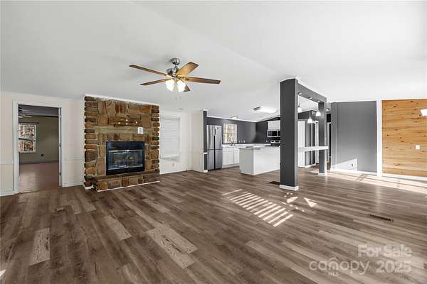 Welcome Home! Experience the perfect balance of space, comfort, and modern design in this beautifully appointed 4-bedroom, 3-full-bath home set on nearly 2.5 acres in Rock Hill, SC. With no HOA, this property offers both privacy and flexibility in a serene setting. The interior showcases a spacious, open layout complemented by luxury vinyl plank flooring throughout. The living area is anchored by a cozy gas log fireplace, creating a warm and inviting atmosphere. The kitchen features stainless steel appliances and a functional design ideal for both everyday living and entertaining. Generously sized bedrooms provide comfort and versatility, while the primary suite offers a private retreat with a full bathroom. Enjoy outdoor living from the covered front porch, perfect for morning coffee, or unwind on the rear deck overlooking a lush, expansive yard with endless possibilities-ideal for gatherings, recreation, or peaceful relaxation. This home delivers modern finishes, abundant land, and a desirable Rock Hill location, making it a rare opportunity.