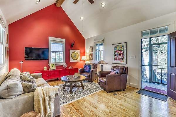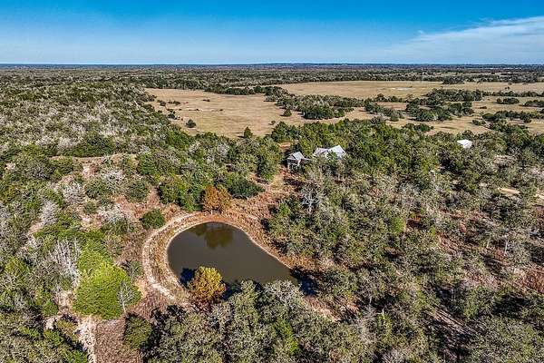 Tucked away in the woods & perched high on a scenic ridge, this one-of-a-kind home offers far-reaching views & unmatched privacy. The 2 bedroom 2 & 1/2 bath home features two spacious living areas with pine floors and vaulted ceilings throughout. Two large porches, one screened, and two stone patios offer outdoor living space. An artist?s dream, the property includes a separate art studio, writer?s retreat, or yoga retreat thoughtfully designed with windows to inspire creativity throughout the year. Life here feels peaceful, intentional and connected to nature. Cleared walking paths wind through the property & a garden area awaits your seasonal vegetables. Other structures include a climate-controlled, large single-car garage, workshop with lighting/electricity, and potting shed. Native plants & grasses complement a picturesque pond for fishing and observing abundant wildlife & birds. Ag Valuation begins in 2026. Minutes from historic Round Top and easy access to Hwy 290. Don't miss the opportunity to see this in person.