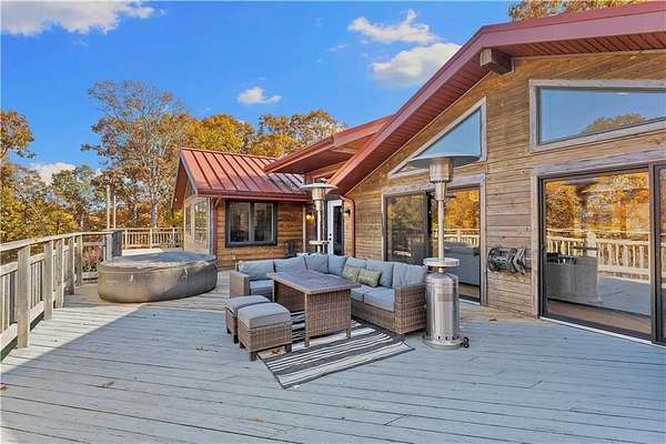 On over 10 acres just outside Rogers, this striking modern home offers breathtaking Ozark Mtn views & a true connection to nature. Designed w/ clean lines & geometric windows reminiscent of F.L. Wright, it blends modern architecture w/ tranquil natural beauty. Main level features gourmet kitchen, cathedral ceilings & 2 lg living areas—ideal for entertaining or everyday living. Lower-level in-law suite w/ private entrance offers flexibility for guests or multi-gen living. Escape light pollution—stargaze by the fire on the large deck or catch panoramic sunset views over a peaceful valley. Fenced, flat front lawn & gardens add charm, while a detached wrkshp & 4-car garage provide practicality & room to create. Multiple bldg sites offer room to expand or customize your dream retreat. Just 12 mi from Hobbs St Park– Conservation Area w/ 50+ mi of trails & Beaver Lake nearby. Monte Ne Boat Ramp & Prairie Creek Marina mins away.Rare blend of design, serenity & adventure in NWA- See attchmnts MLS 1340094 & 1341783