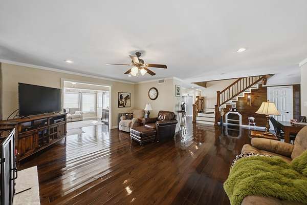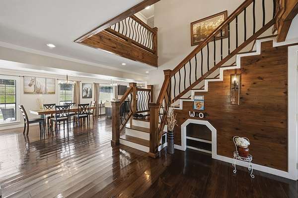 Horse lover's dream! Nestled on 8.75 acres in the Bradford area on State Highway 19, this amazing two-story home offers the perfect blend of charm, space, and functionality. Beautifully restored to its glory, the home features 5 bedrooms, 3.5 baths, two spacious living areas, and an electric fireplace for added comfort. Gorgeous hardwood floors and a stunning staircase create timeless character throughout. The primary suite is a true retreat, offering a large ensuite bath with a garden tub and an oversized tiled walk-in shower with an open design. Upstairs, you'll find 4 additional bedrooms, providing plenty of space for family and guests. Outside, the property is set up perfectly for horse enthusiasts with a barn featuring 5 stalls, electricity, and water, along with fencing ready for horses. A rare opportunity to enjoy country living with room to roam, ride, and relax.