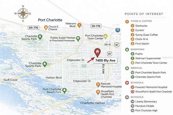 From US-41 (Tamiami Trail) turn west onto Edgewater Dr, then right onto Collingswood Blvd, then left onto Bly Ave. Property will be on the left side.