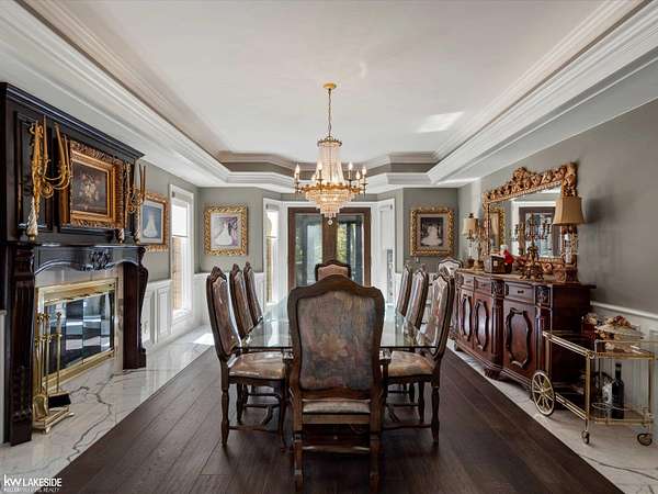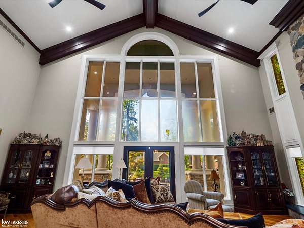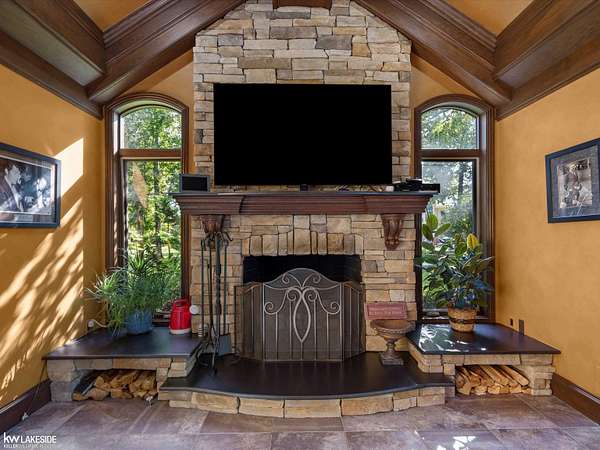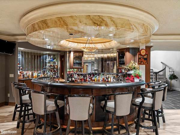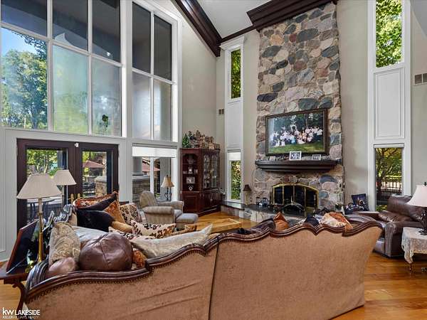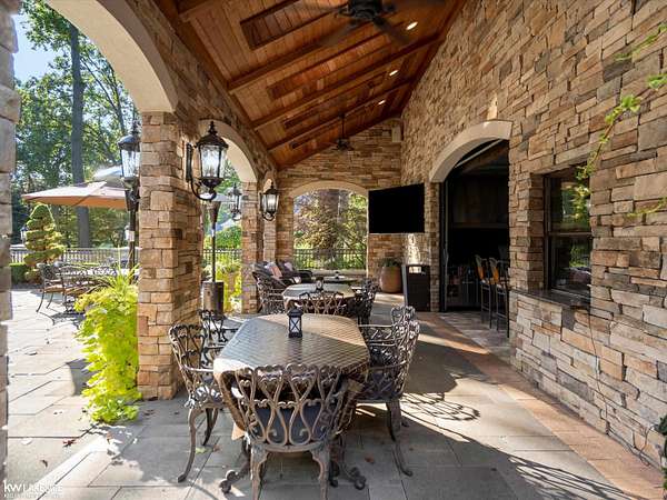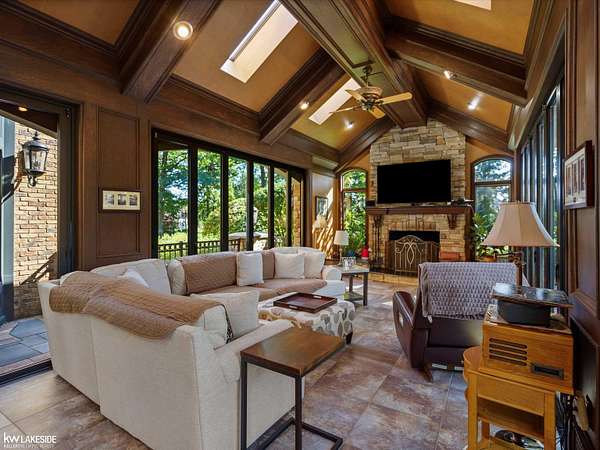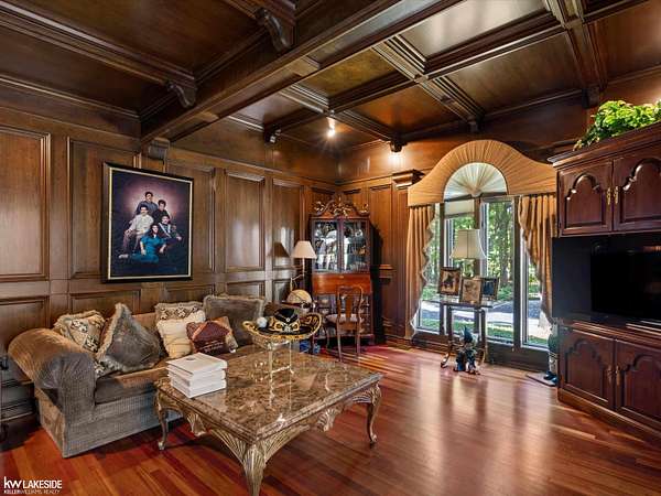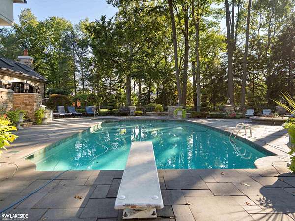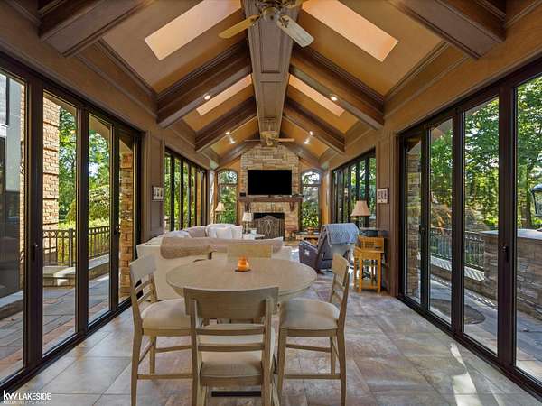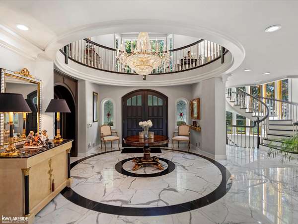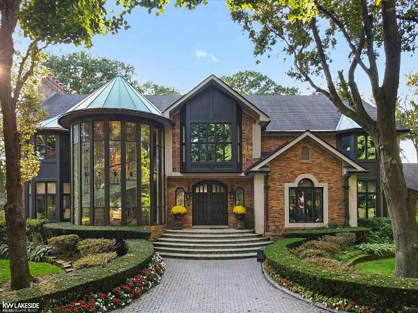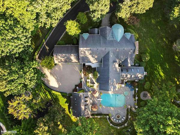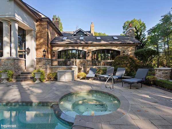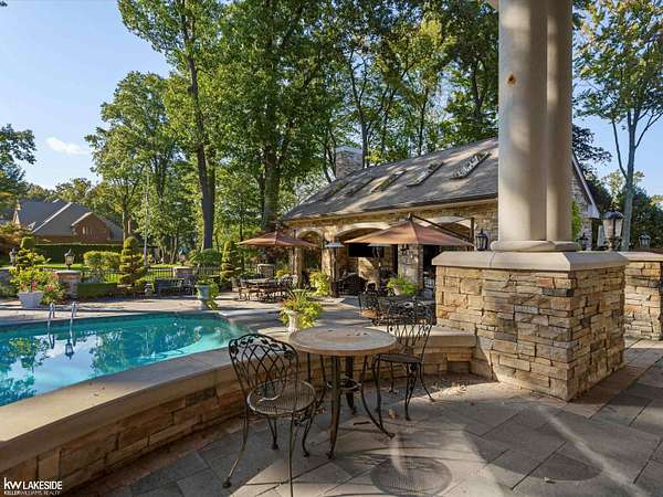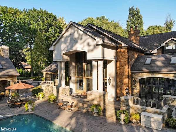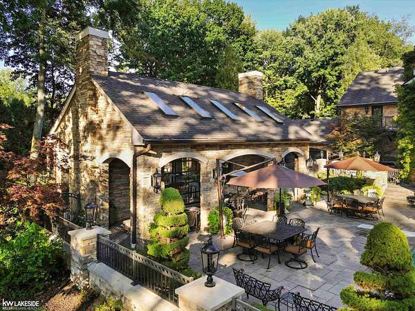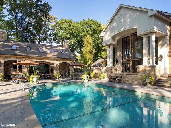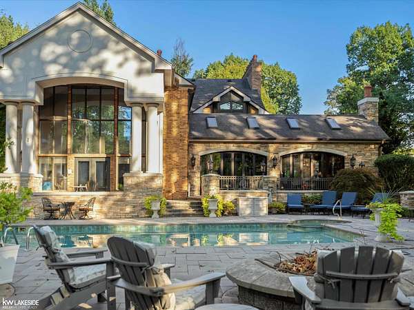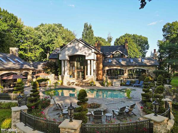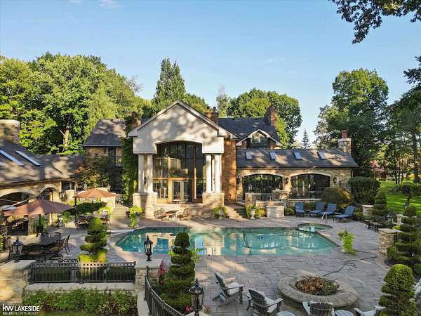 Step into over 8,000 sq ft of handcrafted luxury, where custom woodwork and fine details define every room. A marble foyer with spiral staircase sets the tone for this exceptional home. The living room and family room feature fireplaces, while the updated chef's kitchen shines with granite counters, island, built-ins, and a spacious walk-in pantry. Enjoy a cozy four-season room with skylights, a den with arched double doors and built-in shelves, and a luxurious main suite with fireplace, walk-in closet, and spa-like bath. Each of the 5 bedrooms includes a private full bath. The expansive finished lower level offers endless entertainment with a second kitchen, bar, wine cellar, and large recreation space. Outdoors, discover your private resort--pool, hot tub, cabana with kitchen and pizza oven, firepit, and more. A 4-car attached garage plus 3-car detached provide ample space. This home delivers elegance, comfort, and entertainment in one remarkable package. Don't wait, schedule a showing today!!