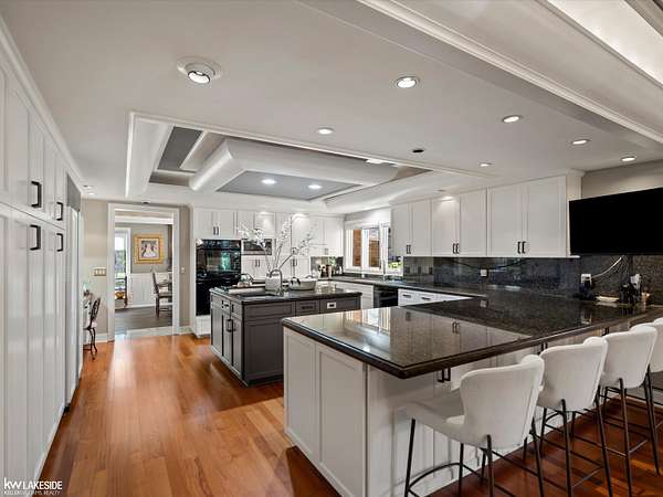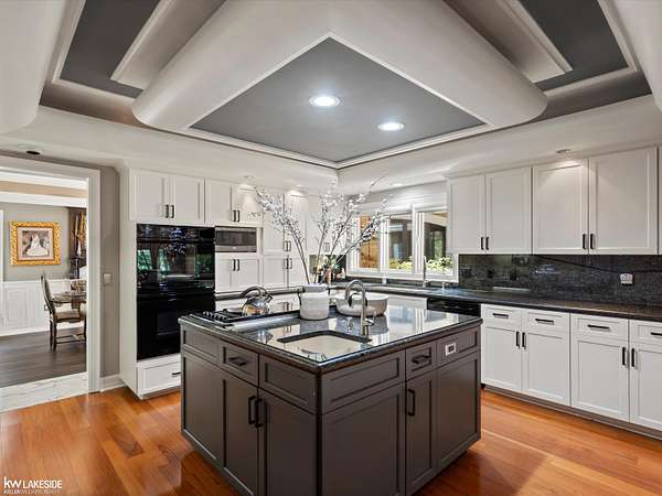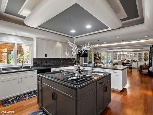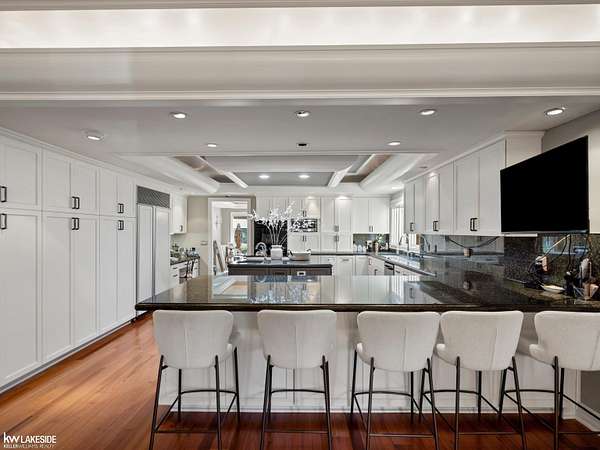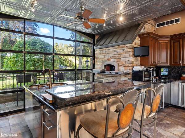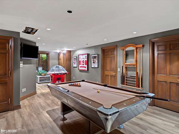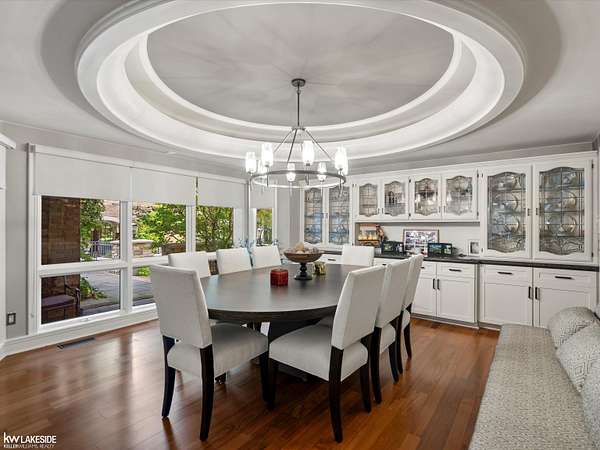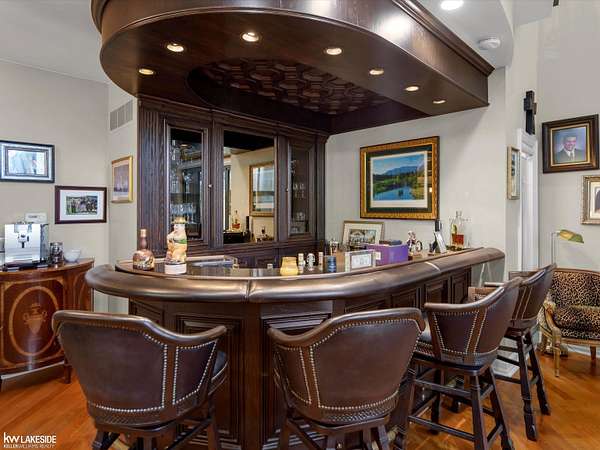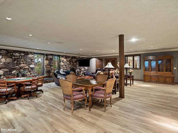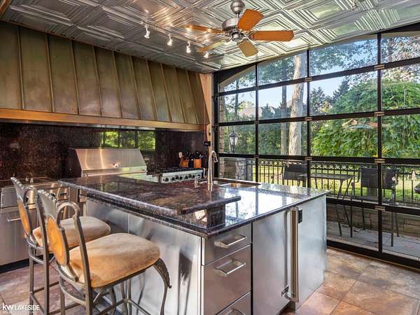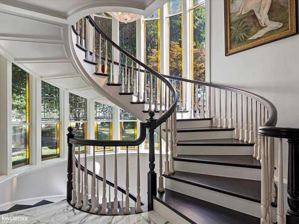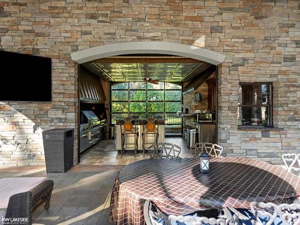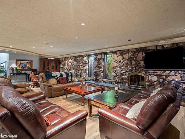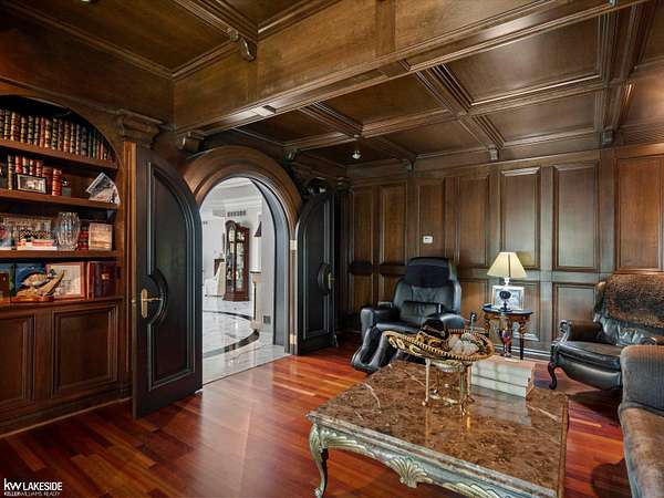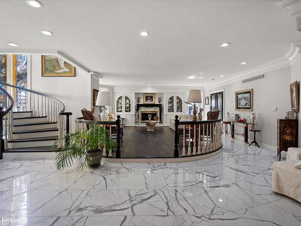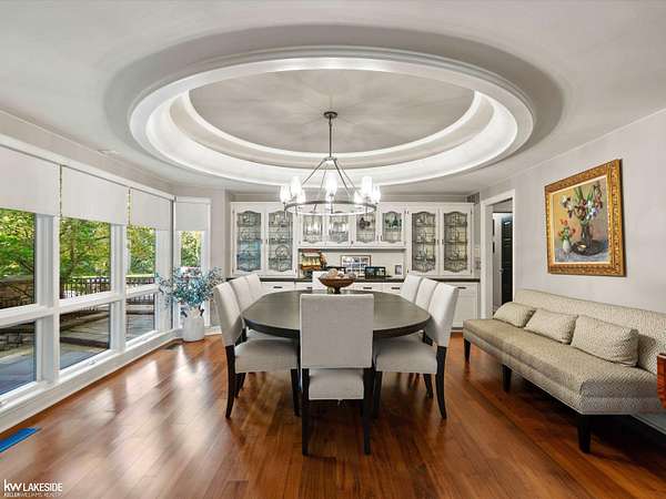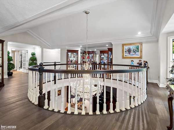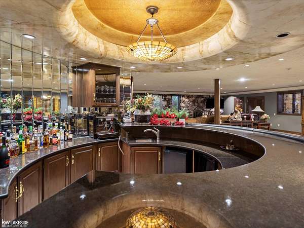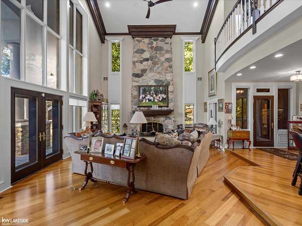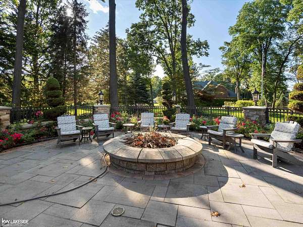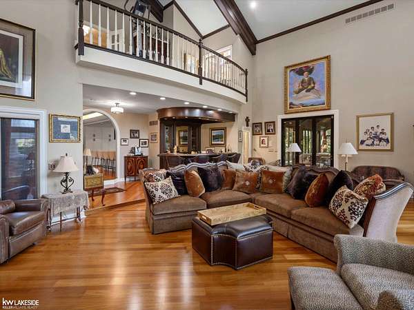 Step into over 8,000 sq ft of handcrafted luxury, where custom woodwork and fine details define every room. A marble foyer with spiral staircase sets the tone for this exceptional home. The living room and family room feature fireplaces, while the updated chef's kitchen shines with granite counters, island, built-ins, and a spacious walk-in pantry. Enjoy a cozy four-season room with skylights, a den with arched double doors and built-in shelves, and a luxurious main suite with fireplace, walk-in closet, and spa-like bath. Each of the 5 bedrooms includes a private full bath. The expansive finished lower level offers endless entertainment with a second kitchen, bar, wine cellar, and large recreation space. Outdoors, discover your private resort--pool, hot tub, cabana with kitchen and pizza oven, firepit, and more. A 4-car attached garage plus 3-car detached provide ample space. This home delivers elegance, comfort, and entertainment in one remarkable package. Don't wait, schedule a showing today!!