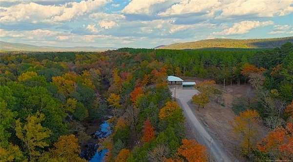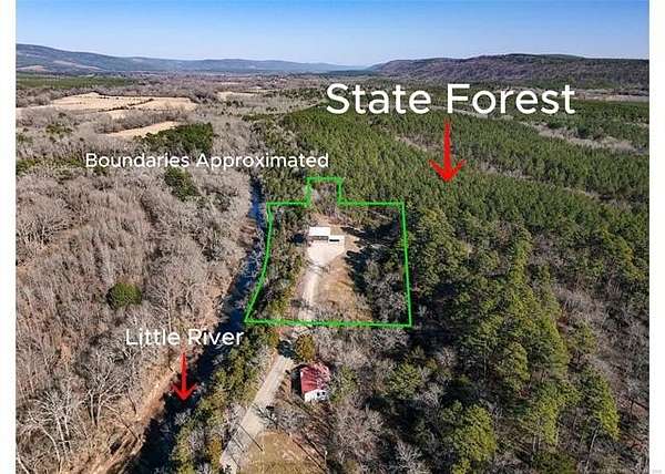 This charming two-story home is nestled on a picturesque 3.5 acre lot mol, perched on a bluff with breathtaking views of the pristine Little River-considered by biologists to be the cleanest river in Oklahoma.This idyllic location offers unmatched serenity for you and your family. whether your seeking a private getaway, investment or dream home. The scenic landscape and exclusive amenities make it the perfect choice. Excellent fishing opportunities, with an abundance of smallmouth bass, black bass, and perch, as well as seasonal kayaking adventures.The property joins 12,000 acres of public state owned land for endless hiking and outdoor adventures. It is truly unique to have a home on Little river that is safe from high waters. Setting on the top deck taking in the mountain views, listening to the river flow and enjoying the scenic landscape you will not want to leave! Originally built in 2008, the house has been completely renovated to provide modern comforts and style. It features five spacious bedrooms and three-and-a-half bathrooms, ensuring ample space for family and guests. The main living area boasts a large, open-plan design that seamlessly connects to the dining room, creating an inviting atmosphere perfect for both relaxation and entertaining. An added luxury is the in-home elevator, providing easy access to all levels of the home. Each room is thoughtfully designed to maximize space and natural light, enhancing the open and airy ambiance throughout. The top story offers stunning views of the surrounding landscape, making it a serene retreat for residents and visitors alike. The adjoining property sit's on 1 acre with a house, 2-bd, 1bath, 500+- ft of river-frontage available for the buyer to purchase! This property is situated at the end of the road making it a private retreat. The house has a perfect blend of natural beauty and modern living, offering a rare opportunity to own a slice of paradise by the river