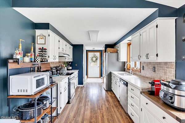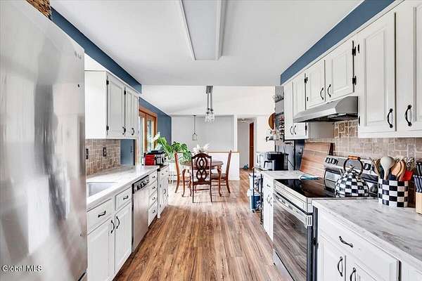 Experience a home with the perfect blend of comfort and convenience. Enter through either the front entrance or convenient side door adjacent to the driveway and the garage. The galley kitchen seamlessly connects to the dinning area and expansive living room. The main floor features two bedroom and two full bathrooms, while the finished basement offers two additional bedrooms and a versatile flex space ideal for an office, play room or workout zone, With a two-car detached garage, storage is never a concern. The roof and heating system are new. Seller is arranging to have stone spread in the driveway prior to closing. This home is Strategically located just 15 minutes from Jiminy Peak Mountain and 18 minutes from Grafton.