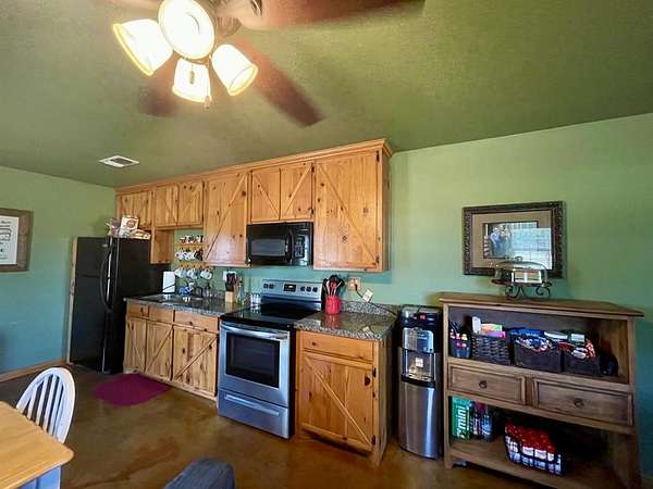 Est $3,754/moGreat barndominium 1bed, 1 bath, with 1600 sq ft shop with 2 rollup doors, concrete floors, custom cabinets, fenced yard, patio, trees, sets back from county road for privacy, corner property, 10.8 acres, water well and septic, RV hookup with 30 and 50 amp and concrete parking, carport, secluded, quiet and peaceful living.