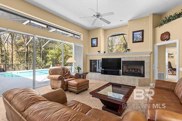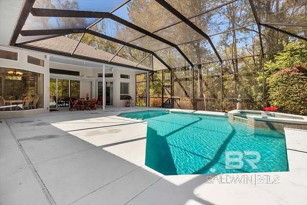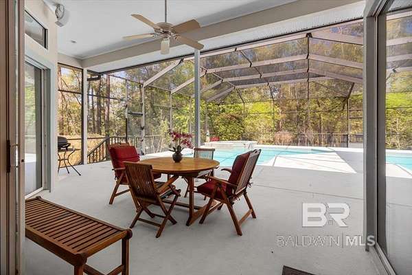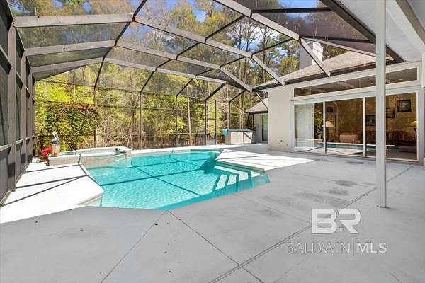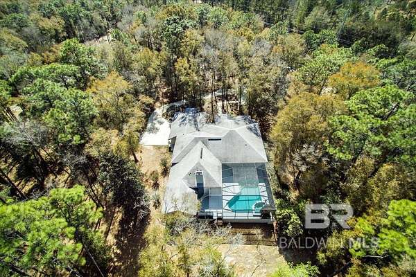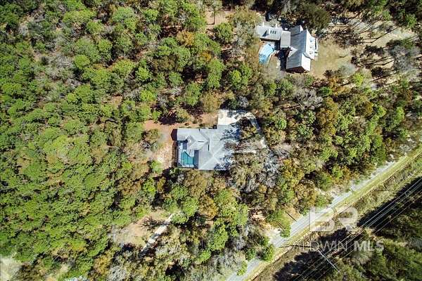 Bask in the beauty of your own private oasis on this 5-acre property! Tucked away in rural Fairhope, the property affords you a winding, tree-lined driveway far away from traffic. You'll find plenty of parking for guests, along with a three-car, side-entry garage with 220-volt wiring for EV charger! The home itself is a sprawling 3600+ square feet with a Formal Den, Formal Dining Room, Breakfast Area, and Great Room with Fireplace. High ceilings and oversized double-pane windows add to the expansive feeling of the place, and fixed transom windows add character and natural lighting throughout. Other highlights include a spacious Office with a wall of built-ins and desks, large Laundry Room right off the Kitchen, and TWO bedrooms that exit to the Pool & Hot Tub. The Primary Suite offers double vanities, garden tub, separate shower, and multiple walk-in closets. Guest Bedrooms enjoy large closets as well. With the whole floor plan oriented around the Pool & Hot Tub, you can enjoy a beautiful view from nearly every room! With a Screened Lanai and quiet woods surrounding, it is the ideal place for gathering all year round! Seller is also offering a brand new fortified roof with acceptable offer, to be installed before closing. Check it out in person and this bit of beautiful Fairhope could be yours! Buyer to verify all information during due diligence.
