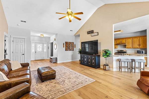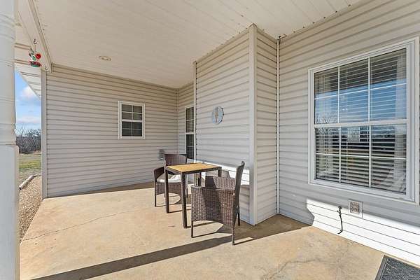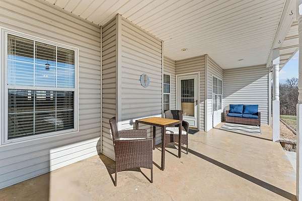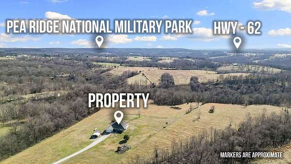 Escape to your own private 24.12-acre sanctuary in Garfield! This incredible property offers the perfect blend of secluded country living and modern efficiency, all within the Pea Ridge School District. The move-in-ready home features 3 bedrooms, 2.5 baths, an office, and a formal dining room. Recent upgrades include new hardwood flooring, updated lighting, a new HVAC system, a new roof, new epoxy front patio and updated landscaping with firepit. Efficiency is key with solar panels, a tankless water heater, and an owned propane tank. For peace of mind, the primary closet doubles as a large tornado shelter, and two ring cameras convey. The acres are mostly flat, usable land features a pond, spring-fed creek, and perimeter trees. Outbuildings include a chicken coop, shed, and carport, plus an attached 2-car garage. Starlink internet conveys! Located just 16 minutes from Pea Ridge HS and seconds from the National Park trails. Note: Polaris ATV and tractor available for separate purchase. Your homestead awaits!