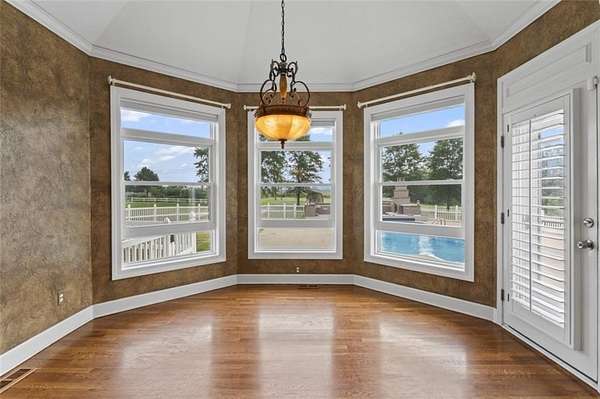 This one checks all the boxes. Custom built 1 1/2 story on a 4.75 acre level estate lot on a paved road!! Check out the amazing 30X60 outbuilding w/ HVAC, pool and cabana building, barn with horse stalls, and outdoor kitchen w/ granite, pizza oven, and built-in stainless grill. Home features 6 bedrooms (2 non-conforming in the basement), 4 1/2 bath and 3 car garage, The finished basement offers full kitchen and laundry, lots of storage and separate entrance. The basement is perfect for multi-generational living. All of this and sooo much more. Seller is offering a 10k carpet allowance with acceptable offer!!!