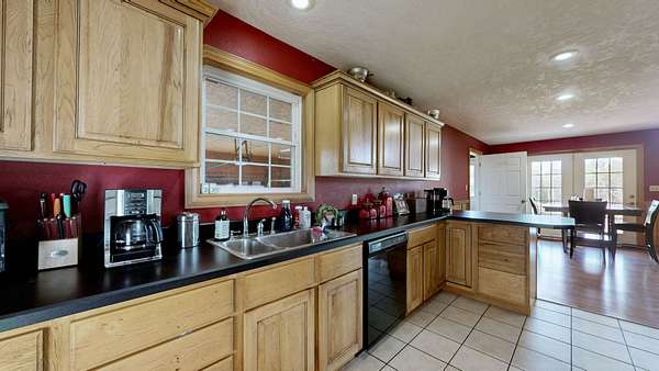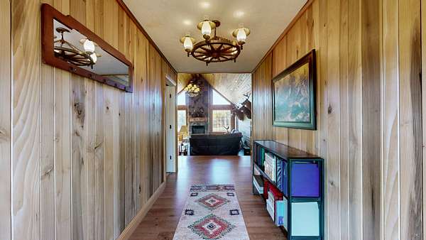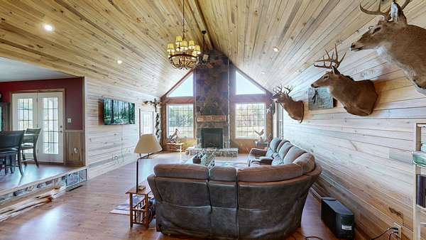 The house (built in 2005) offers an open floor plan with rustic charm that includes a stacked stone fireplace & wood paneling with expansive windows framing a stunning view of the pond, fields & woods behind. A 2 car attached garage gives you added storage. 4 Bedrooms (one without a closet) & 3 full baths offers great living spaces that are easy to maintain with hard surface flooring.