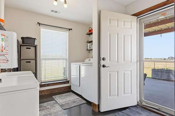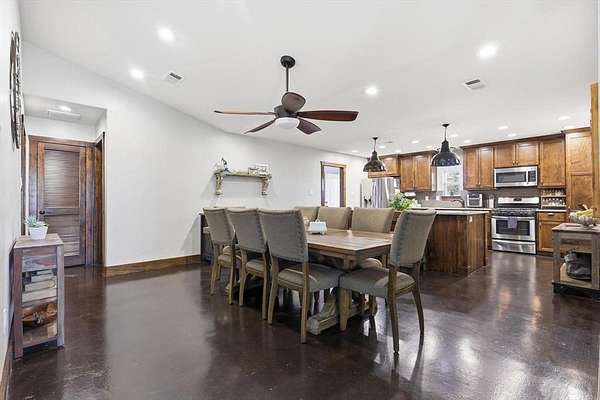 Outside, the property offers a large shop structure and a secondary barndo space, providing flexibility for storage, projects, or future improvements. There is a storm shelter in the house. The land is level with expansive views, a pond approximately 10–12 feet deep, and plenty of room for livestock, recreation, or building out your vision.
