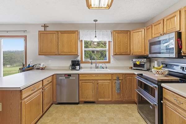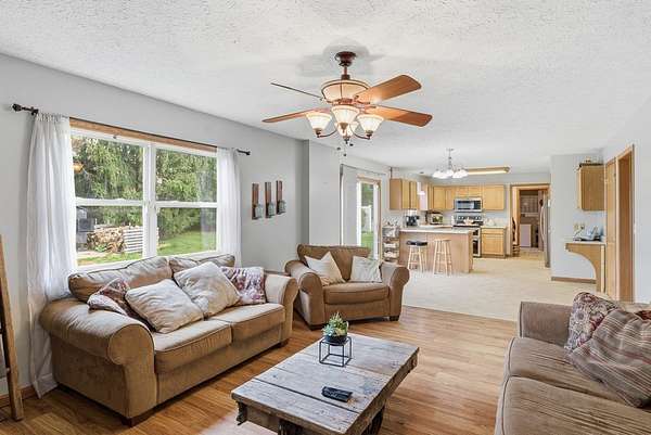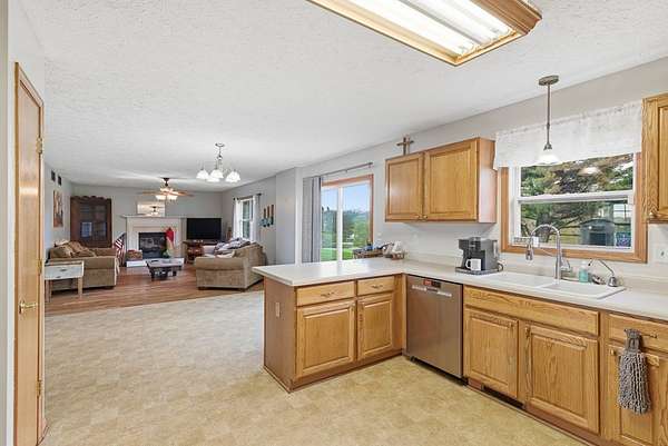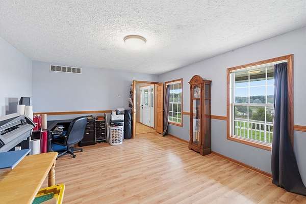 Welcome to this spacious 4-bedroom, 2.5-bath home nestled on a little over 3 acres in the Clear Fork school District! The open-concept kitchen & living area creates an inviting space perfect for everyday living & entertaining, while the large dining room is ideal for gatherings. A main floor office provides flexibility for remote work or study & the convenient first-floor laundry adds ease to your routine. The primary suite features a generously sized bathroom & walk in closet-- offering a private retreat! Enjoy peaceful countryside views from the covered front porch or stay cozy & save money year-round with the outdoor woodburner. Basement rec room with bar area adds even more room to relax or entertain--would make a perfect man cave, kids space or home theater! Several new windows enhance natural light throughout! Attached 2 car garage with additional storage! RV pad with hookup! With easy access to State Routes 546, 13 & I-71, this home combines rural tranquility with convenience!