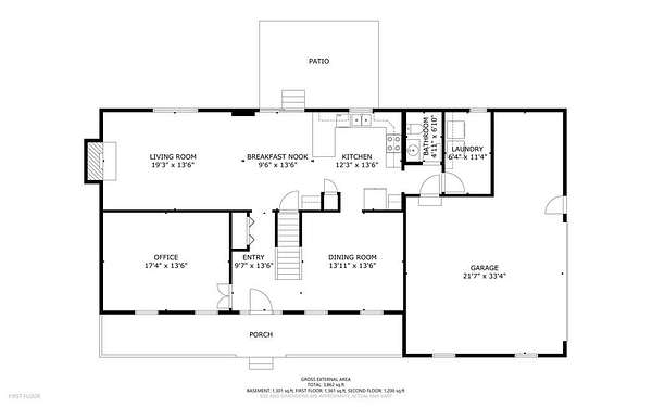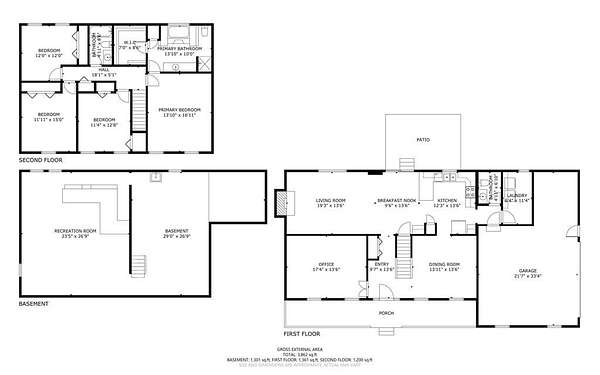 - Basement, Bathroom x 3, Bedroom x 4, Dining Room, Family Room, Great Room, Kitchen, Laundry, Living Room, Office