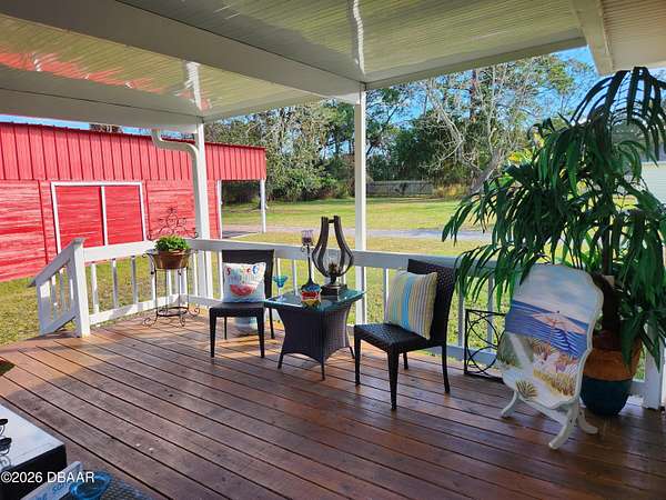 Approximately 3 Acres of Country Charm! A welcoming wrap-around porch guides you through a stunning lead-glass entryway. To the right of the home sits an oversized garage and workshop-perfect for hobbyists, extra storage, or additional workspace. At the back of the property, a vibrant red barn adds both character and functionality to this picturesque country setting. Inside, you'll discover a beautifully remodeled home featuring a sleek white chef's kitchen outfitted with stainless-steel appliances. The large, airy dining room opens over the breakfast bar, making it an ideal space for casual family meals or memorable holiday gatherings. The spacious great room showcases soaring ceilings and leads into a deluxe primary suite complete with its own private covered patio-your own personal retreat. The opposite wing of the home offers three additional bedrooms, a guest bath, and the dining area. Simply too many extras to list-come experience this exceptional property for yourself!
