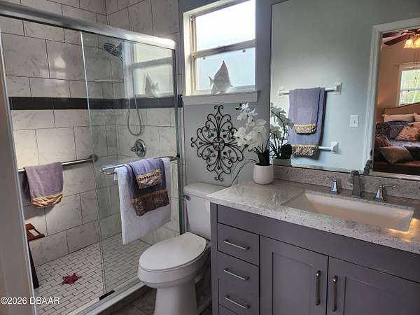 - Ceiling Fan(s), Pantry, Shower No Tub Primary Bathroom, Split Bedrooms