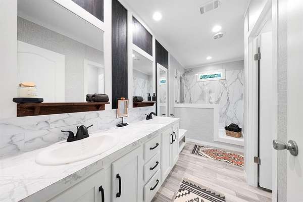 One of the five lots already features a stunning 2023 Palm Harbor home -- a turnkey-ready modern farmhouse that boasts 3 bedrooms, 2 bathrooms, 1,440 square feet of open-concept living space, and standout details like a large kitchen island, exposed beams, stainless steel farm sink, walk-in pantry and closets, and a 72" spa-style shower with body sprayers. Enjoy a private setting, a front covered entry, and a spacious back deck perfect for entertaining.