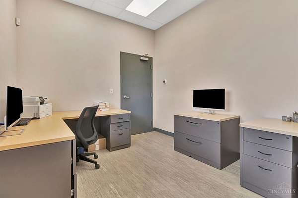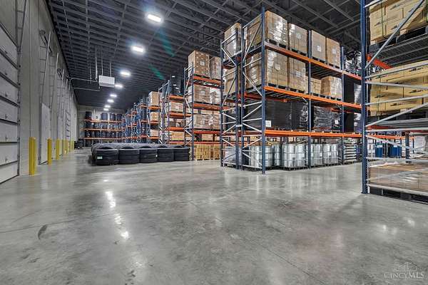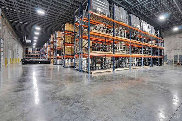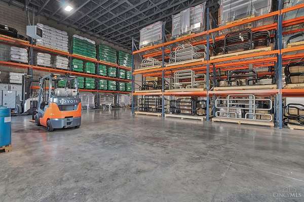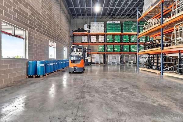 Built in 2022, this state-of-the-art 20,000 SF warehouse on 3.5 acres stands out with its rare 24-foot clear ceiling height, one of the only buildings in the area offering this kind of vertical space, ideal for high-capacity racking and modern logistics. The 1,000 SF buildout features a private office, break room/kitchen, two ADA-compliant bathrooms, and a shower, making it move-in ready for your team. Designed for performance, the warehouse features two insulated dock doors (9' x 10') and two drive-in doors (14' x 14'), 6 thick, 42# WWF reinforced concrete parking lot, and 10 CMU perimeter walls for heavy-duty durability. You'll also find a full fire suppression system, security with cameras, 400-amp, 480V electrical service, and a forklift charging station. Beautifully landscaped and zoned Industrial Warehouse (350) with Community Reinvestment T.A.P.(710) tax abatement benefits. 2023 pallet racking, 2023 Crown reach truck, and HD plastic pallets negotiable. Inventory does not convey.