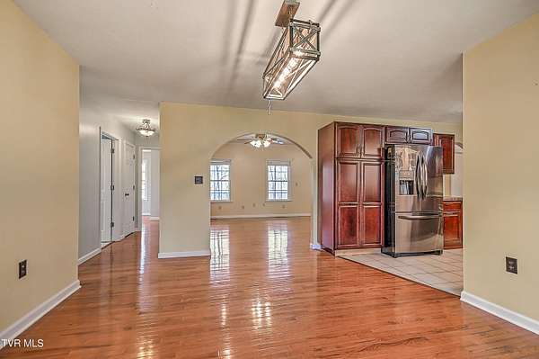 One level, low maintenance, custom-built home on nearly 4 acres. Enjoy privacy yet convenience to all that Bristol offers including downtown Bristol, Hard Rock Casino, shopping, dining, and more! Featuring wood flooring and tile throughout, a primary suite with double closets, large private bath with soaking tub and walk in shower. Two bedrooms share another full bath, and there's a fourth room that would make a great office or nursery. Updated kitchen with black stainless appliances. Gas logs and propane tanks stay. Sunroom added on the back of the home overlooking the beautiful wooded back yard. Two sheds plus a garage makes for plenty of room for storage. Schedule your private tour of this move-in-ready home today!