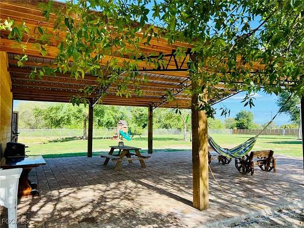 This country estate boasts 3.75 acres fenced in with two separate entrances and a pond full of Tilapia. Cleared for your enjoyment and Oaks for shade. Enjoy this 2021 DW Manufactured 4-bedroom 2-bathroom with 1,568 sq ft of living space. Master bedroom has a walk in closet and huge tub. Home is spacious. Millings compacted up to the home for a firmer parking area. Appliances included. Pole barn with outdoor cooking area and fire pit for outdoor gathering. Animal and Farm Animals ok with approval. Rent or Buy, Owner is willing to negotiate. Montura Ranch Estates is a rural golf-cart and horse friendly community offering residents free access to the Community Pool house and Clubhouse. First and Security Deposit required. 20 min from Clewiston and 1.5 hr from each coast. Enjoy Florida's warm weather year-round.