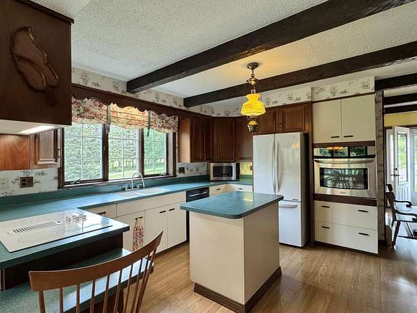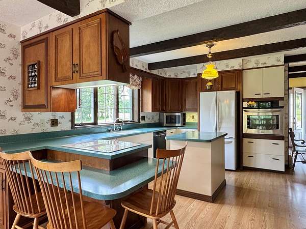 Discover a truly special property located at the tranquil end of Bradbury Rd in Fort Kent. This cherished family home, once belonging to the family of the first female legislator in Maine; the late Dora Pinkham, offers a unique opportunity to own a piece of local history. The older home exudes character and charm, featuring four spacious bedrooms and 3.5 baths, including a first floor primary en-suite. The dine-in kitchen, formal dining, heated sun-room addition and large living room provide ample space for comfortable living. Relax and take in the serene views of the pond, deer, fox and other wildlife from the year-round heated sunroom, complete with sliding glass doors throughout you can easily access the patio and relax outdoor under the pergola. Situated on a generous 10-acre parcel, the property also includes a large workshop and a quonset building, perfect for hobbies, storage, or potential business ventures. Embrace the beauty of this secluded setting and the rich heritage of this remarkable property. Schedule your private showing today and step into the story of this unique Fort Kent home.