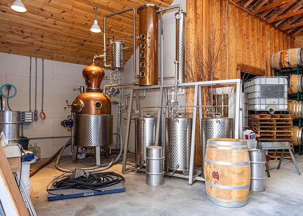 Bartlett Winery is the oldest winery in the State of Maine established in 1983 by Bob and Kathe Bartlett. Their fruit wines and spirits have won multiple awards through the years with the original and iconic blueberry wine being a well known and much loved treasure of Maine. The winery is located in Gouldsboro, Maine near the Schoodic Peninsula section of Acadia National Park. Situated on 20 acres of the Maine woods, there are two entrances, one is the public facing entrance with a small parking lot and and a serene and moss covered short path through the trees to the first building featuring the winery's tasting room, production areas and owner's living quarters. The second building is reached by the service entrance and houses the distillery, known for the estate's Rusticator Rum, as well as storage and work spaces. Owner, Bob Bartlett literally wrote the law that allowed wineries to operated in Maine. Now, ready to turn over the reins to the next generation of entrepreneurs, wine makers and visionaries, this offering is a unique opportunity to make your mark on an industry of passionate creators and collectors. Land and buildings, equipment, inventory and name convey along with training to be agreed upon by buyers and sellers.