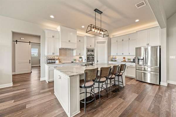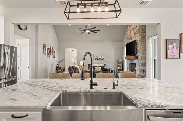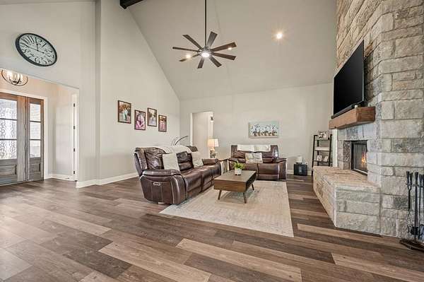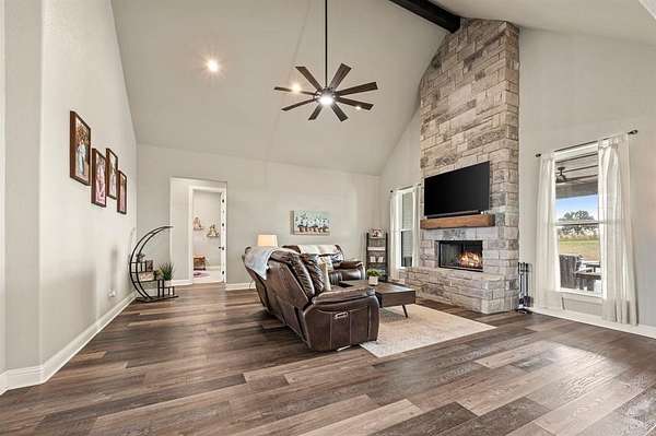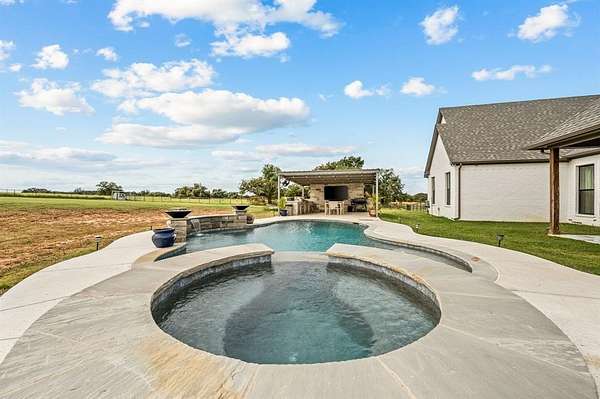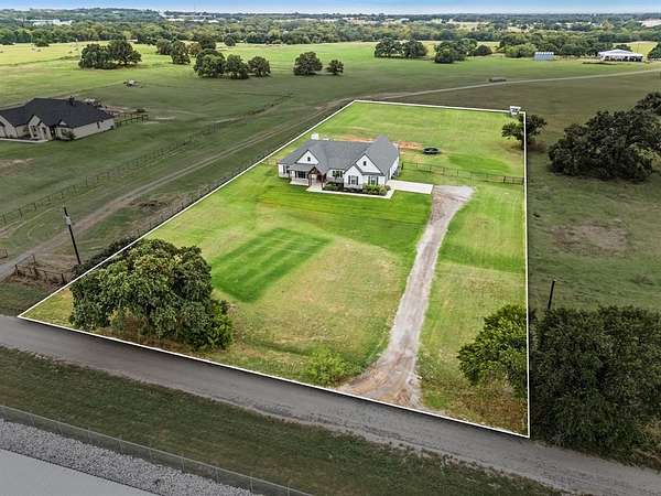 Welcome to 175 County Road 1109 in Decatur, Texas -- a beautifully designed modern farmhouse on 2 acres that delivers the peace of country living with an easy commute into the DFW metroplex. Built in 2022 and meticulously maintained, this home blends timeless craftsmanship with today's most desirable finishes. The open-concept layout features vaulted ceilings, warm natural light, and a cozy brick fireplace that anchors the main living area. The kitchen is straight out of a magazine -- granite countertops, custom cabinetry, double ovens, and a hidden back-kitchen pantry that's as functional as it is impressive. With 4 bedrooms, 3 baths, and over 2,700 square feet, every detail has been thoughtfully planned for comfort, flow, and modern living. The primary suite is a true retreat, complete with a spa-worthy bath and a huge walk-in closet that conveniently connects to the spacious laundry room for everyday ease. Step outside and you'll instantly feel like you're on vacation -- a pool with spa, outdoor kitchen, and covered patio with fireplace create your private backyard oasis. The buried propane tank efficiently powers the spa, pool, and outdoor living area, making entertaining effortless year-round. The 2-acre lot is fully fenced, so your four-legged friends will love you forever -- and if you've ever dreamed of adding a few chickens to the mix, they'll fit right in, too. This home offers the perfect balance of style, space, and serenity -- all just a short drive from shopping, schools, and major highways.