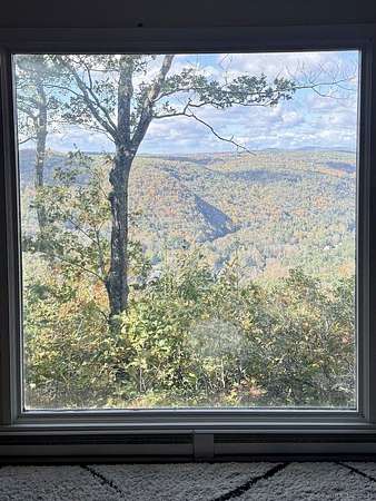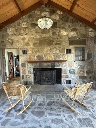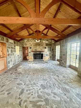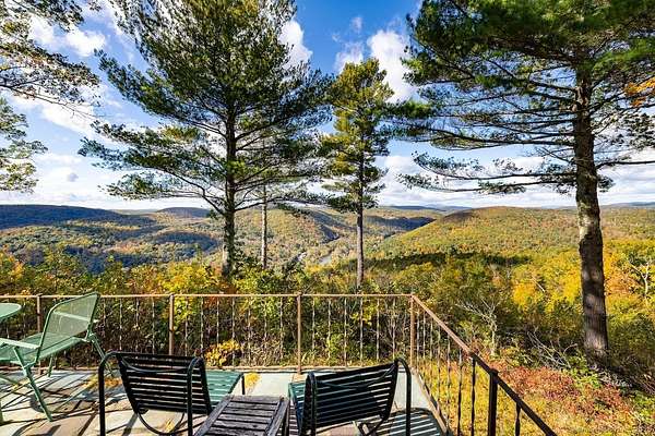 Perched high above the iconic West Cornwall Covered Bridge, this remarkable property offers some of the best views in Cornwall - and possibly all of Litchfield County. From the Housatonic River below to sweeping mountain ridges stretching from west to north, the panorama is nothing short of breathtaking. The original 1930 stone hunter's cabin exudes vintage charm, with a dramatic fireplace, handcrafted details, and a stone terrace perfectly positioned to take in the views. The newer addition enhances the home's appeal, featuring a spacious Great Room with kitchen, dining, and a second fireplace - all oriented toward the magnificent outlook. With two bedrooms, each with ensuite baths, the home provides comfort and privacy while maintaining its rustic elegance. A large two-car garage adds practicality and space for equipment or creative use. Whether you're drawn to the romance of the historic cabin, the potential to elevate the home further, or simply the unrivaled vistas, this property is a rare find in the heart of the Litchfield Hills - just minutes from the Covered Bridge, Housatonic River, and the charming village of West Cornwall.