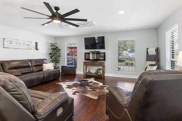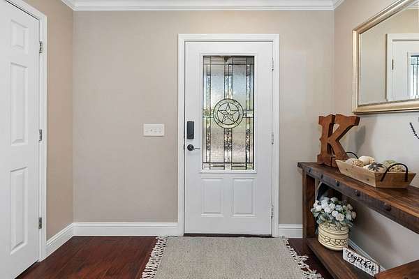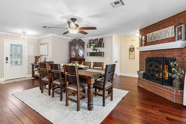 Est $2,450/moBeautiful family home offering over 2300 sq ft on over 2 acres in Hudson ISD. This 3 bed/2.5 bath home offers a wonderfully updated kitchen with stainless appliances, gas range, granite counter tops throughout the home, wood burning fireplace, engineered wood floors, split bedroom floorplan, walk in shower, fenced backyard, 24x32 metal building on slab, 12x14 shop/storage building, wonderful neighborhood and all just minutes from town.
