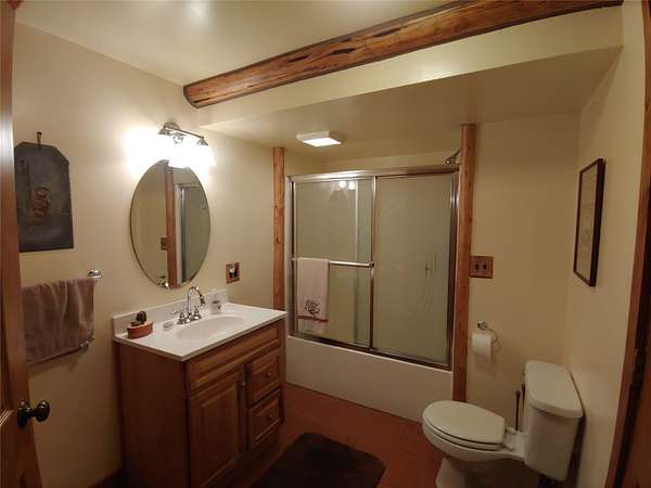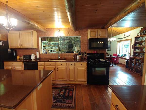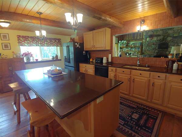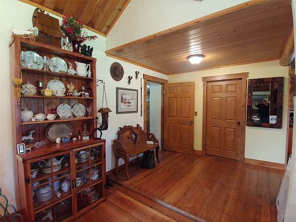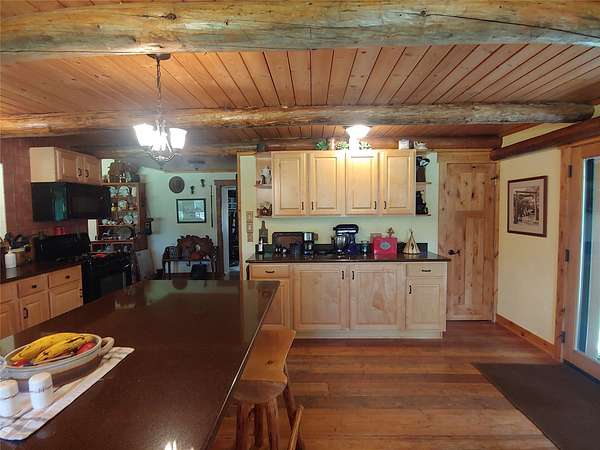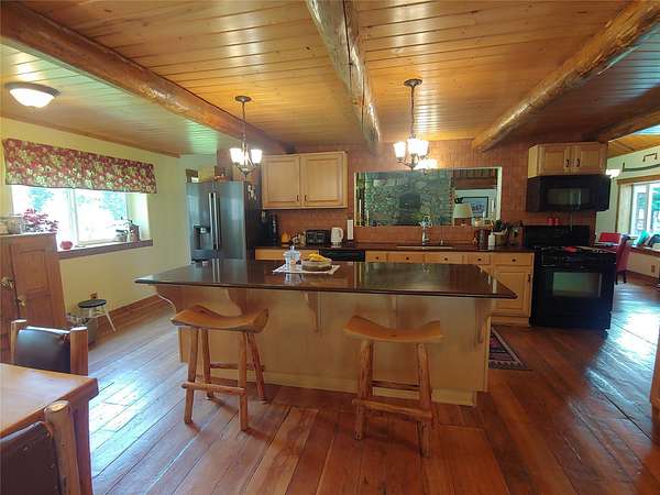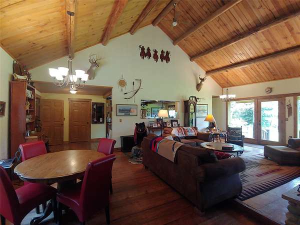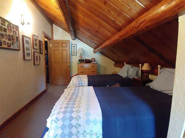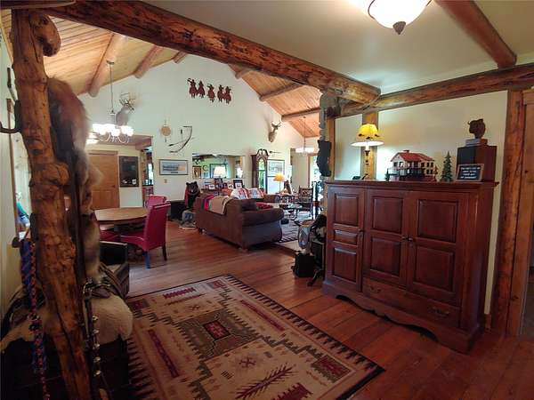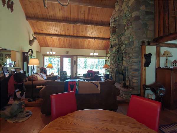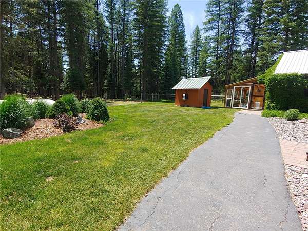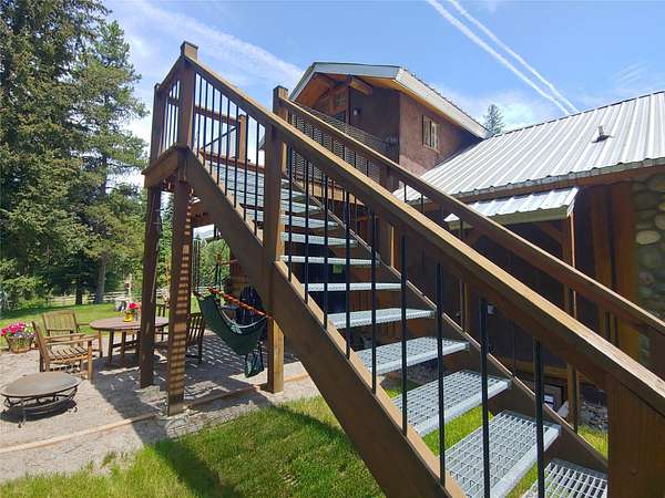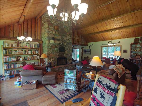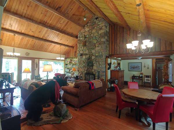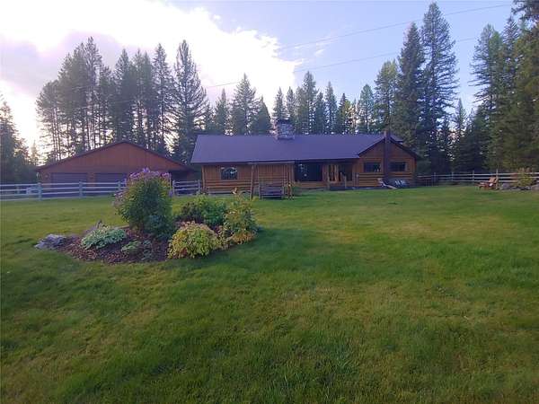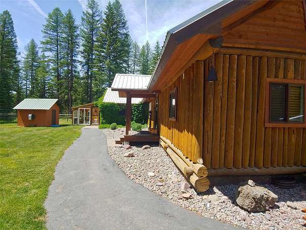 New metal roofing! Welcome to this beautiful 4bed, 3ba log sided home on 3.9 acres. This warm and inviting home has been meticulously maintained and beautifully kept. The wooden floors throughout the main living areas are original and lend to the charm of the home. A floor to ceiling rock fireplace is not only stunning showpiece but extremely functional, radiating heat from the stones for up to 8 hours after the fire is out. There is built-in water feature on the face of the fireplace. Just off the living area is a spacious kitchen and dining area, a full bath, large mudroom/laundry/pantry and a charming upstairs bedroom. On the other end of the home is the primary bedroom, with fireplace, full bath and two more bedrooms upstairs as well as as bonus/storage room and a 3/4 bath just off the main entry. Small dry cabin, fenced for horses, horse run-in, tack area, 3 car garage, well house, hot tub and direct easement access to Forest Service lands to the South. Too many amenities to list!