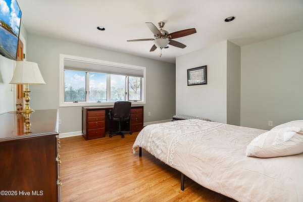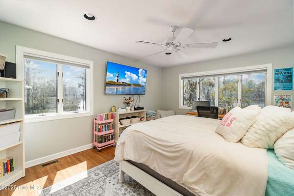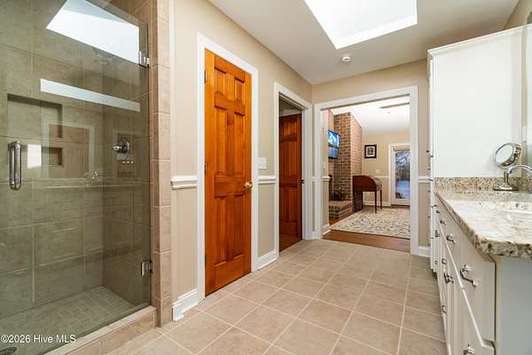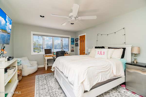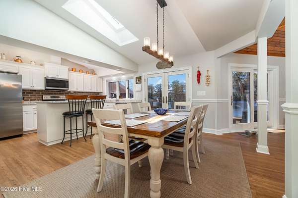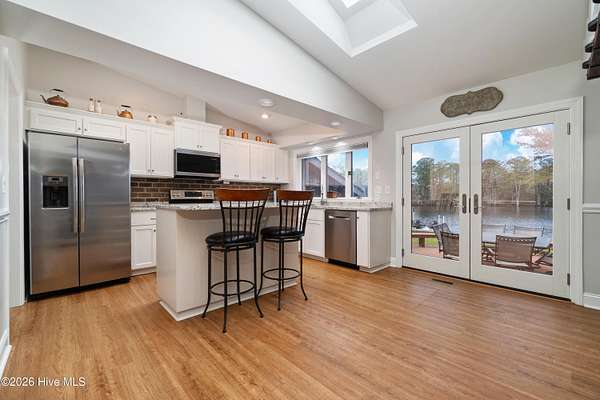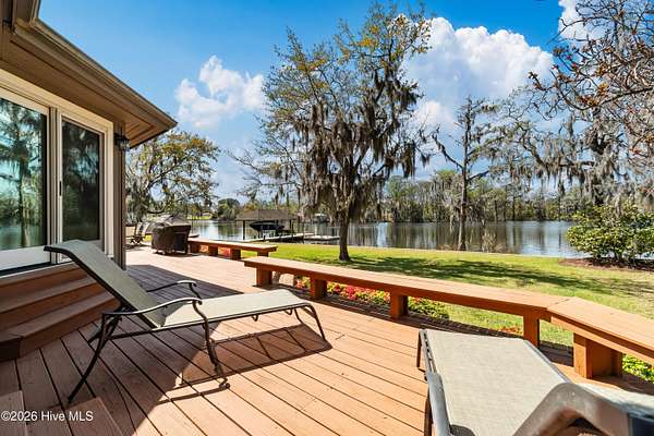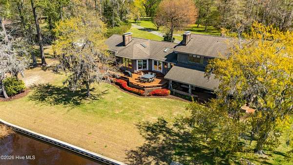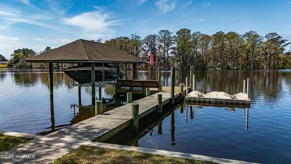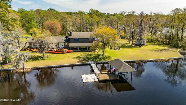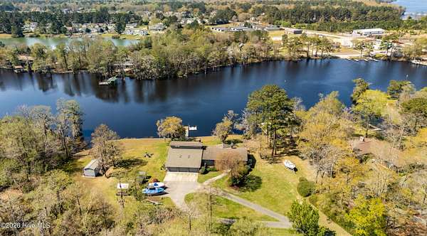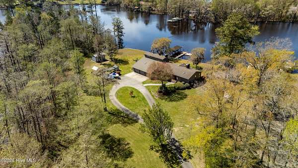 Situated on 2.65 acres at the end of a private road, this well maintained, updated property with spectacular water views from every room has it all. Main living area offers an open floor plan with updated LVP flooring, granite counter tops, SS appliances, kitchen Island which provides extra seating and counter space. Living room has a fireplace, tall ceilings and a wall of windows over looking the beautiful waterfront of Brices Creek. Updated master bedroom with LVP flooring, walk in closet, fireplace and wall of windows that let in natural light and beautiful views of the water. Master ensuite updated with custom built cabinets, granite countertops, walk in shower, Rannai tankless water heater, garden tub. Two well sized additional bedrooms and an office offer plenty of space for family and working from home. Downstairs HVAC installed in 2018, upstairs HVAC installed in 2025. This home also has a massive 3 car garage and a family room with a wall of windows overlooking the water and, a wood burning fireplace...it's a great area for entertaining. Enjoy your morning coffee or evening sunset cocktail under the cozy covered porch or on the spacious rear deck. Boat dock with new lift and jet ski docks offer easy access to the Trent River. Custom greenhouse, raised garden beds, oversized shed and chicken coop/run are perfect for anyone who enjoys gardening. Additional updates include new 270ft bulkhead, new septic fields and whole home automatic generator. NO CITY TAXES!! Only minutes to the downtown historic area for shopping and dining. Approximatley 30 minutes to the Crystal Coast Beaches!